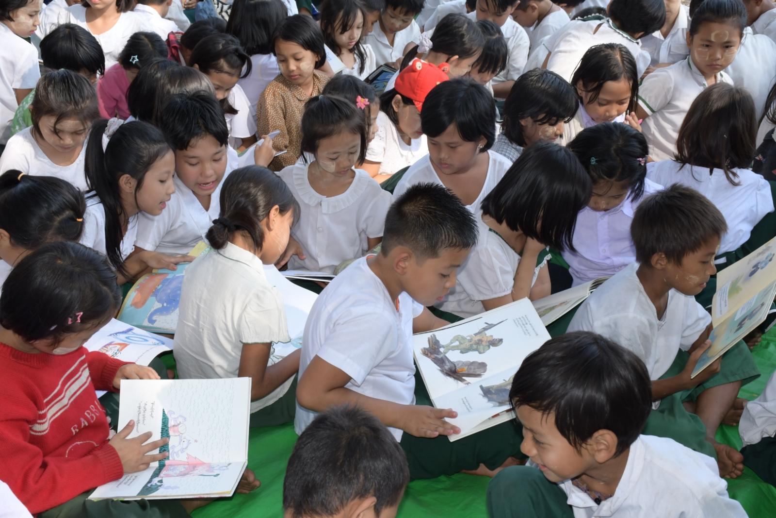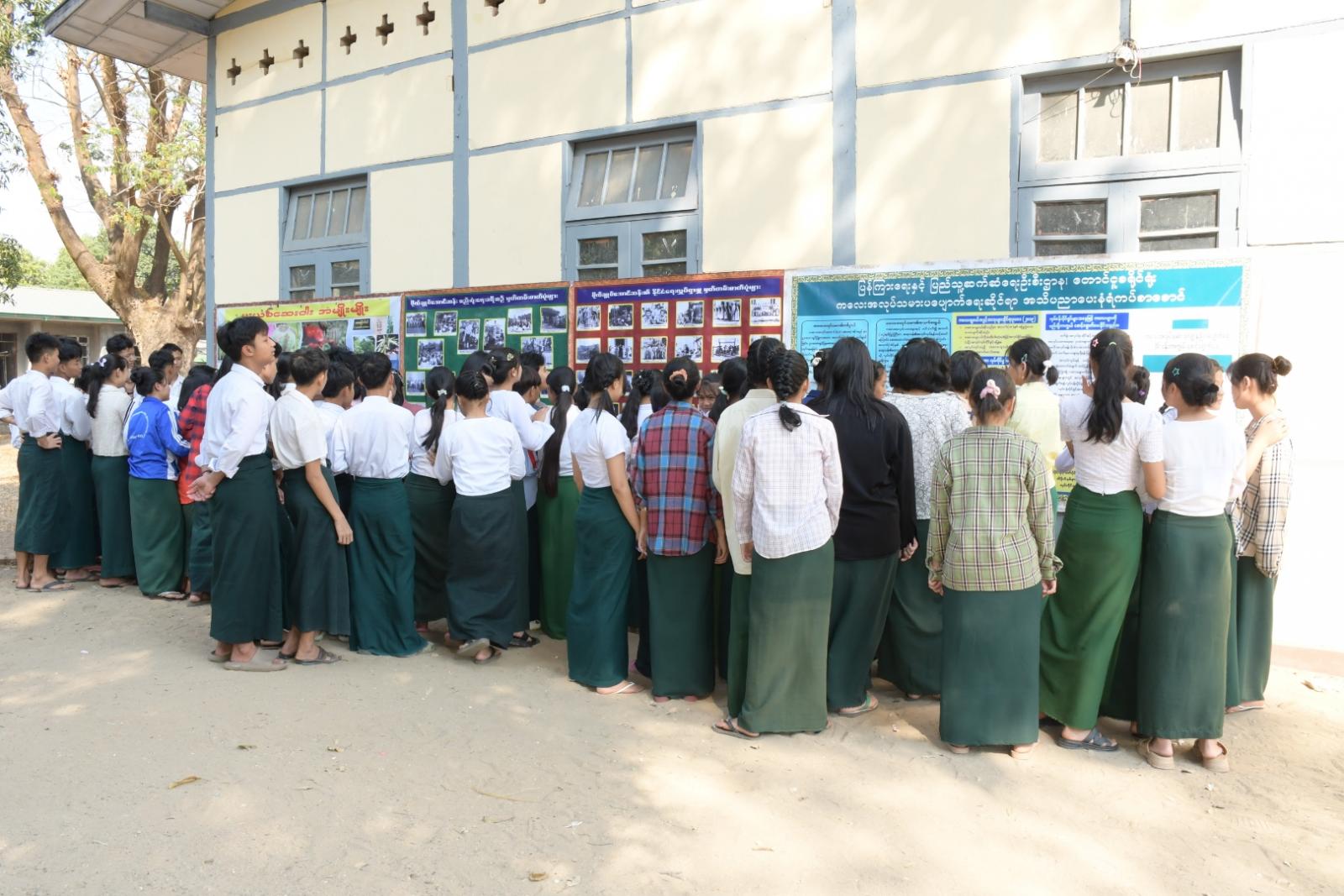 ထို့နောက် ကလေးငယ်များအား စာဖတ်သည့် အလေ့အကျင့်ရရှိစေရန် စာအုပ်စာစောင်များ ငှားရမ်းဆောင်ရွက်ခဲ့ရာ မူလတန်းအဆင့် ကျောင်းသား၊ ကျောင်းသူများက စိတ်ပါဝင်စားစွာ ငှားရမ်းဖတ်ရှုကြကြောင်းနှင့် ခင်းကျင်းပြသထားသော အသိပညာပေးနံရံကပ်စာစောင်များကို ကြည့်ရှုလေ့လာကြကြောင်း သိရသည်။