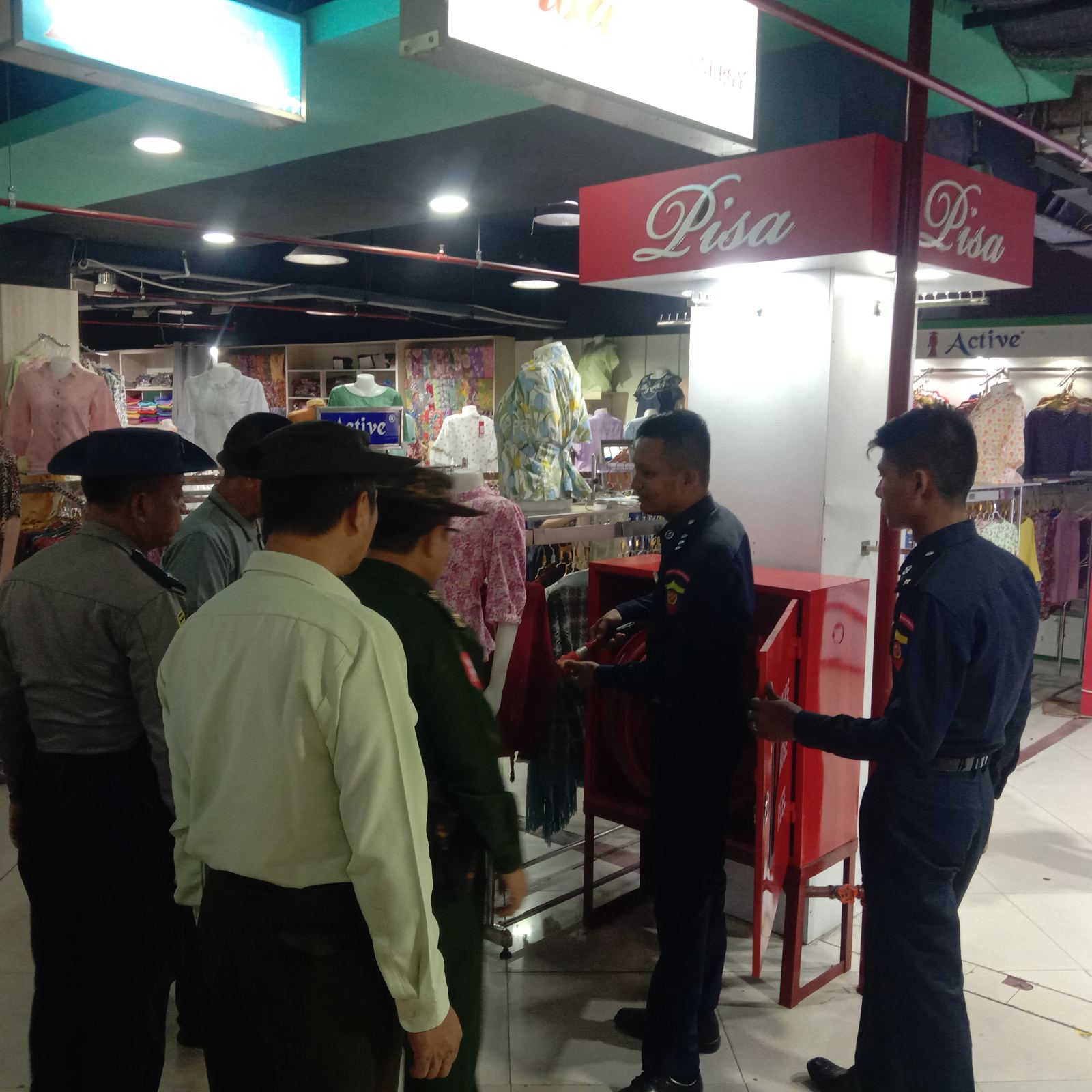 ရှေးဦးစွာ မရမ်းကုန်းခရိုင် မီးသတ်ဦးစီးမှူးမှ ကုန်တိုက်အတွင်း မီးဘေးလုံခြုံရေး လှည့်လည်ကြည့်ရှု စစ်ဆေးခြင်း၊ မီဘေးအန္တရာယ် ကြိုတင်ကာကွယ်ရေးလုပ်ငန်းများနှင့် ပတ်သက်၍ စနစ်တကျကြိုတင်ဆောင်ရွက်ထားရှိရန်တို့ကို ပညာပေးဟောပြောခဲ့ပြီး မီးသတ်ဆေးဘူး စနစ်တကျအသုံးပြုမှု မီးငြိမ်းသတ်နည်းကို ရှင်းလင်းပြသကာ လက်တွေ့သရုပ်ပြ ပူးပေါင်းလေ့ကျင့် ဆောင်ရွက်ခဲ့သည်။ ထို့နောက် မီးလောင်မှုဖြစ်ပွားပါက မီးသတ်ယာဉ်များဖြင့် မီးငြိမ်းသတ်ပုံကို သန္ဓေမီးသတ်တပ်ဖွဲ့ဝင်များနှင့် အရန်မီးသတ်တပ်ဖွဲ့ဝင်များ စည်ပင်သာယာရေးရုံးမှ ဝန်ထမ်းများနှင့် စျေးသူ၊ စျေးသားများက ပူးပေါင်းလေ့ကျင့်ဆောင်ရွက်ခဲ့ကြောင်း သိရသည်။