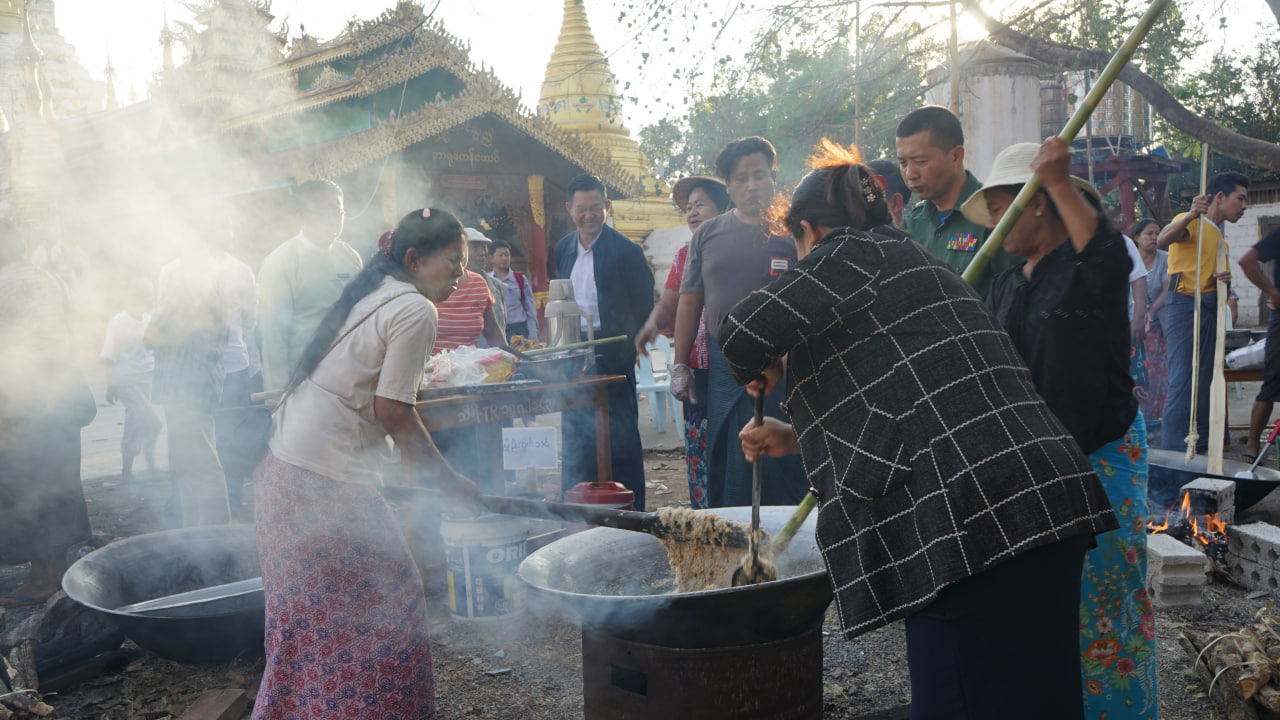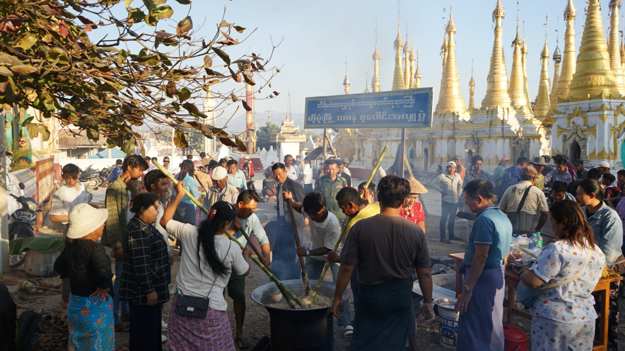 တပို့တွဲလရောက်သည့်အခါသမယ၌ အနယ်နယ်အရပ်ရပ်ရှိ ဒေသခံပြည်သူများတို့က စုပေါင်းထမနဲထိုးလျက်ရှိရာ ရှမ်းပြည်နယ်(တောင်ပိုင်း) ပအိုဝ်းကိုယ်ပိုင်အုပ်ချုပ်ခွင့်ရဒေသ၊ ဟိုပုံးမြို့၊ သီရိမင်္ဂလာရွှေချမ်းသာမွေတော်ဘုရားကြီး၌ ယမန်နေ့ညနေ ၅ နာရီက စစ်မှုထမ်းဟောင်းအဖွဲ့၊ မြို့ပေါ် (၆)ရပ်ကွက်မှ ဒေသခံပြည်သူများတို့က သီရိမင်္ဂလာရွှေချမ်းသာမွေတော်ဘုရားကြီးနှင့် မြို့ပေါ်ရှိ ဘုန်းတော်ကြီးကျောင်းများသို့ တပိုတွဲလပြည့်နေ့တွင် ကပ်လှူနိုင်ရန်အတွက် စုပေါင်းထမနဲထိုးခဲ့ကြကြောင်း သိရသည်။