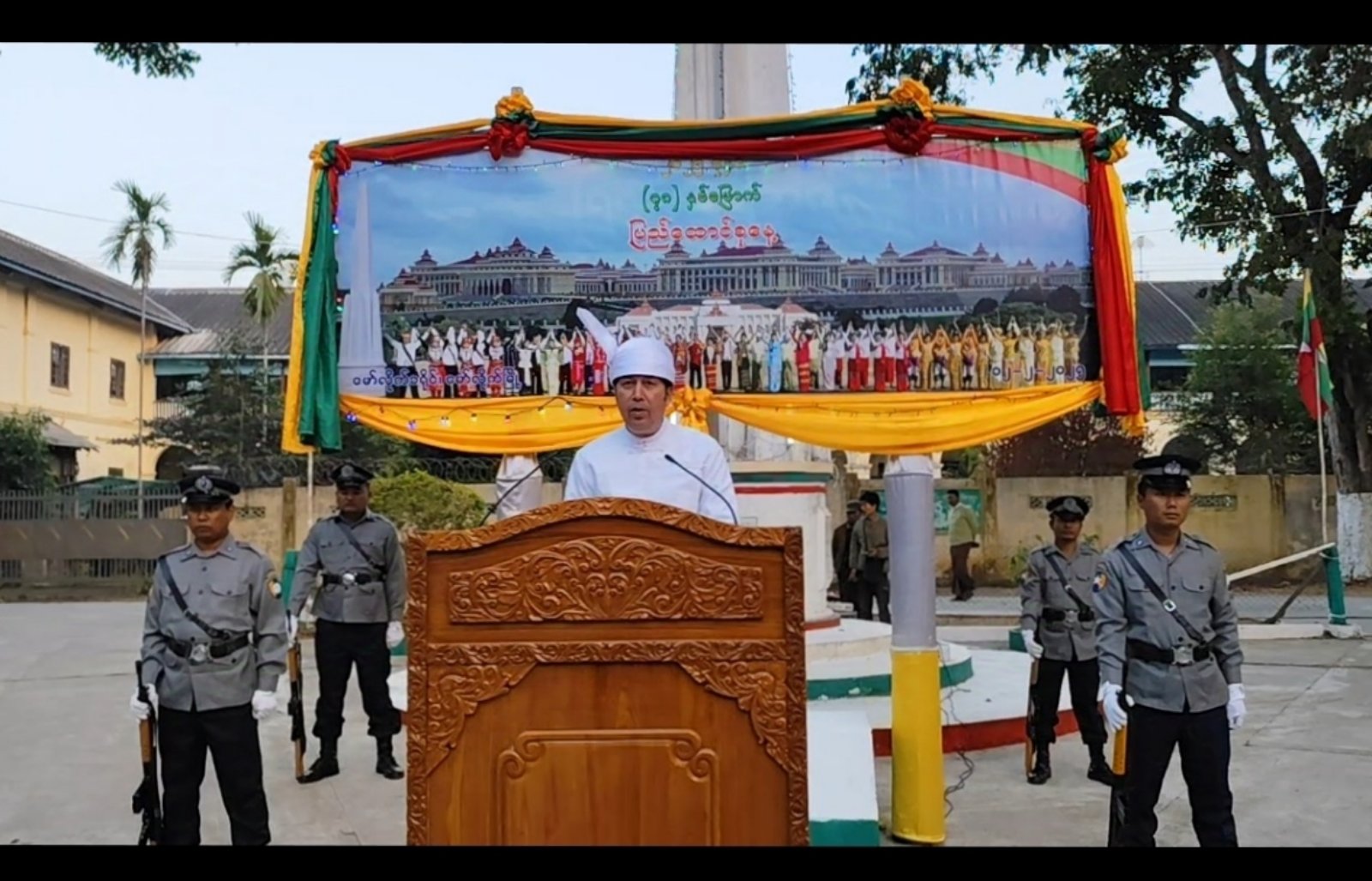 ဦးစွာ ခရိုင်/မြို့နယ်များအလိုက် စီမံအုပ်ချုပ်ရေးအဖွဲ့ဥက္ကဋ္ဌများနှင့် အခမ်းအနားသို့ တက်ရောက်လာကြသူများက ပြည်ထောင်စုသမ္မတမြန်မာနိုင်ငံတော်အလံအား အလေးပြုခြင်း၊ ကျဆုံးလေပြီးသော အာဇာနည်ခေါင်းဆောင်ကြီးများနှင့် ရဲဘော်အပေါင်းအား အလေးပြုခြင်းများ ဆောင်ရွက်ကြပြီး နိုင်ငံတော်စီမံအုပ်ချုပ်ရေးကောင်စီဥက္ကဋ္ဌ၊ နိုင်ငံတော်ဝန်ကြီးချုပ် ဗိုလ်ချုပ်မှူးကြီး သတိုးမဟာသရေစည်သူ သတိုးသီရိသုဓမ္မမင်းအောင်လှိုင်ထံမှ ပေးပို့သော (၇၈) နှစ်မြောက် ပြည်ထောင်စုနေ့သဝဏ်လွှာကို သက်ဆိုင်ရာတာဝန်ရှိသူများက ဖတ်ကြားကြသည်။