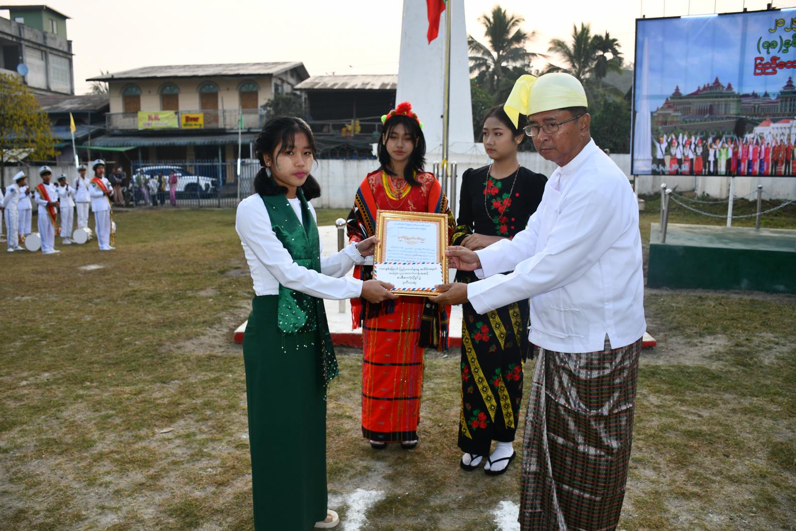 ထို့နောက် (၇၈) နှစ်မြောက် ပြည်ထောင်စုနေ့အထိမ်းအမှတ် ပြိုင်ပွဲများနှင့် အားကစားပြိုင်ပွဲများတွင် ဆုရရှိကြသည့် ဌာနဆိုင်ရာဝန်ထမ်းများနှင့် ကျောင်းသား/ကျောင်းသူများအား တာဝန်ရှိသူများက ဆုများ ပေးအပ်ချီးမြှင့်ကြပြီး တက်ရောက်လာသူများအား တိုင်းရင်းသားရိုးရာ အစားအစာ စတုဒိသာများဖြင့် တည်ခင်းဧည့်ခံခဲ့ကြကြောင်းသိရသည်။