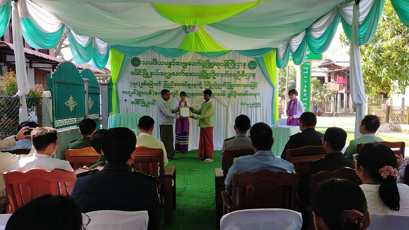 ဆက်လက်၍ သထုံခရိုင်ကျေးလက်ဒေသဖွံ့ဖြိုးတိုးတက်ရေးဦးစီးဌာန ခရိုင်မှူးဒေါ်သီတာဝင်းစံကလုပ်ငန်းဆောင်ရွက်မှုနှင့်ပတ်သက်၍ ရှင်းလင်းပြောကြားခဲ့ပြီး ဒေသခံတစ်ဦးကကျေးဇူးတင်စကားပြောကြားခဲ့သည်။ ထို့နောက်ပေါင်မြို့နယ်ကျေးလက်ဒေသဖွံ့ဖြိုးတိုးတက်ရေးဦးစီးဌာန မြို့နယ်ဦးစီးမှူး ဦးကျော်ကျော်လတ်က လုပ်ငန်းလွှဲပြောင်းမှတ်တမ်းလွှာကို အလှပ်ကျေးရွာအုပ်ချုပ်ရေးမှူးဦးသိန်းတင်အား ပေးအပ်ခဲ့သည်။