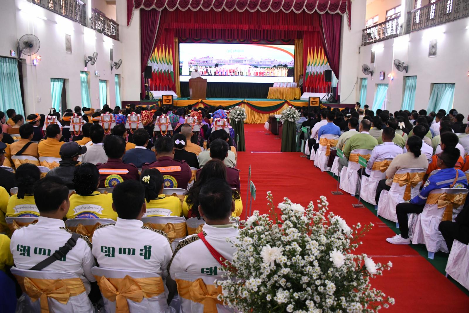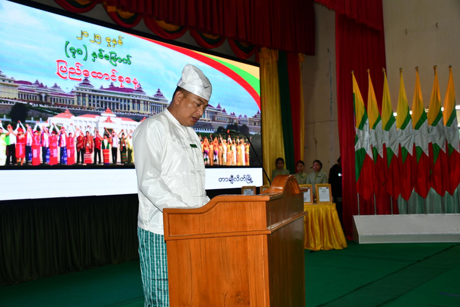 ရှမ်းပြည်နယ်(အရှေ့ပိုင်း)၊ တာချီလိတ်မြို့၌ (၇၈)နှစ်မြောက် ပြည်ထောင်စုနေ့ သဝဏ်လွှာဖတ်ကြားခြင်းနှင့် ထူးချွန်ဆုရရှိသူများအား ထပ်ဆင့်ဂုဏ်ပြုချီးမြှင့်ခြင်းအခမ်းအနားကို ယနေ့နံနက်ပိုင်းက အောင်မြတ်ခန်းမတွင် ကျင်းပသည်။
