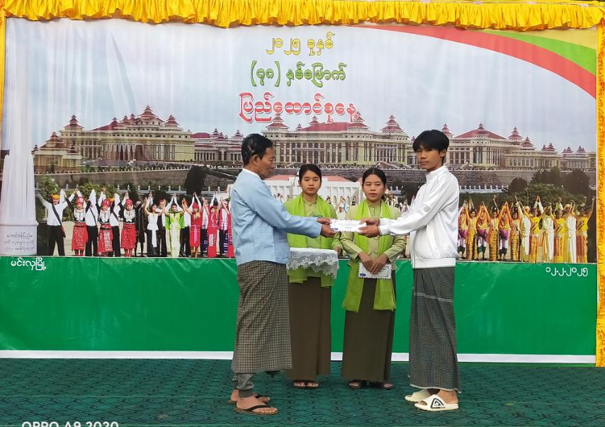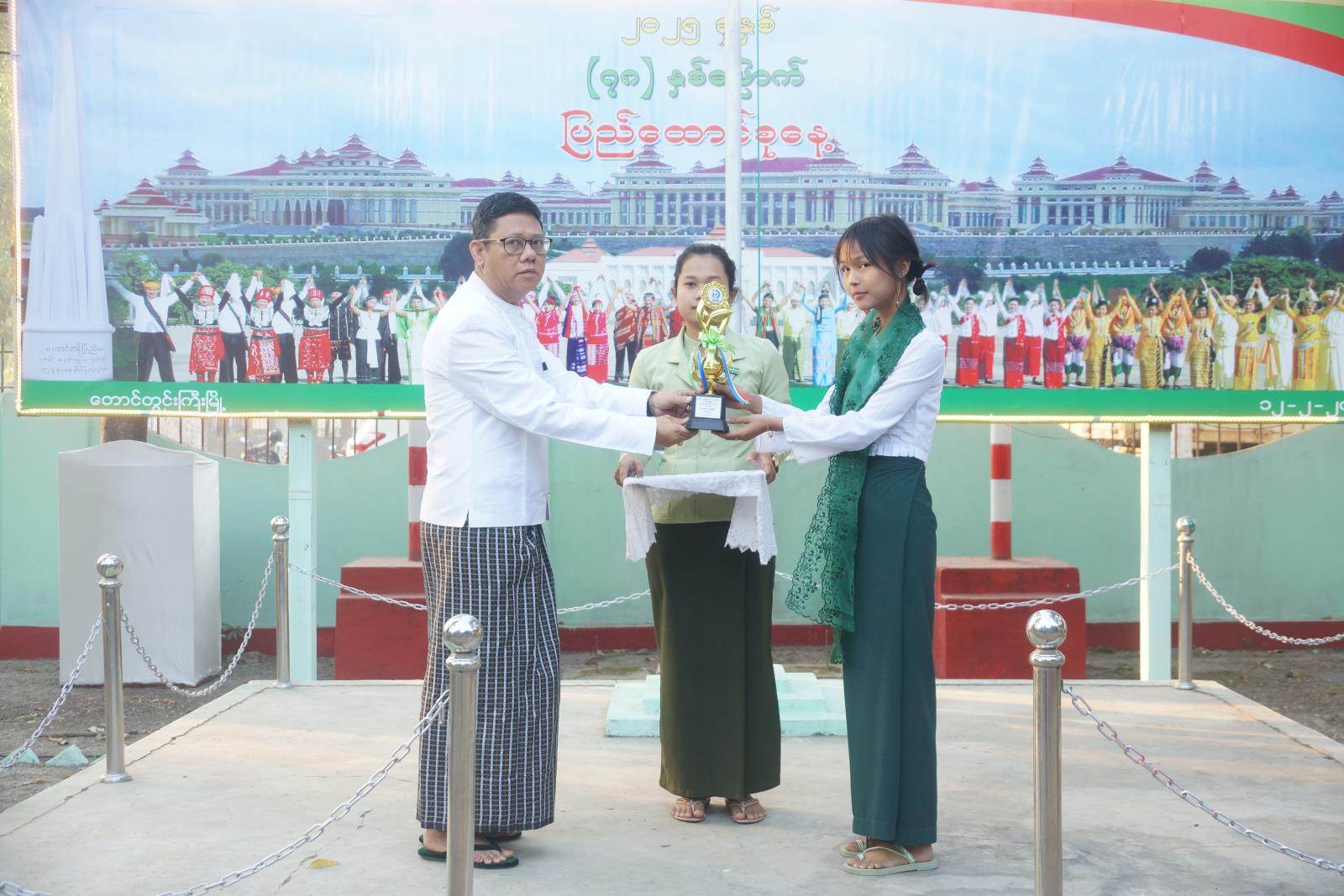 ထို့နောက် (၇၈) နှစ်မြောက် ပြည်ထောင်စုနေ့အထိမ်းအမှတ် ပြိုင်ပွဲများနှင့် အားကစားပြိုင်ပွဲများတွင် ဆုရရှိကြသည့် ဌာနဆိုင်ရာဝန်ထမ်းများနှင့် ကျောင်းသား/ကျောင်းသူများအား တာဝန်ရှိသူများက ဆုများ ပေးအပ်ချီးမြှင့်ကြပြီး တက်ရောက်လာသူများအား တိုင်းရင်းသားရိုးရာ အစားအစာ စတုဒိသာများဖြင့် တည်ခင်းဧည့်ခံခဲ့ကြကြောင်းသိရသည်။