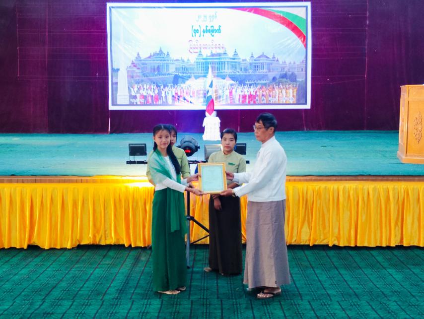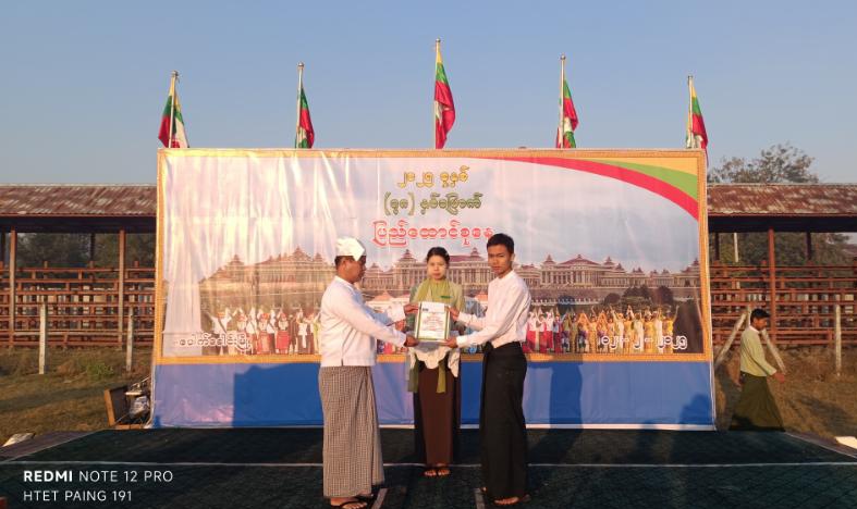 ထို့နောက် (၇၈) နှစ်မြောက် ပြည်ထောင်စုနေ့အထိမ်းအမှတ် ပြိုင်ပွဲများနှင့် အားကစားပြိုင်ပွဲများတွင် ဆုရရှိကြသည့် ဌာနဆိုင်ရာဝန်ထမ်းများနှင့် ကျောင်းသား/ကျောင်းသူများအား တာဝန်ရှိသူများက ဆုများ ပေးအပ်ချီးမြှင့်ကြပြီး တက်ရောက်လာသူများအား တိုင်းရင်းသားရိုးရာ အစားအစာ စတုဒိသာများဖြင့် တည်ခင်းဧည့်ခံခဲ့ကြကြောင်းသိရသည်။