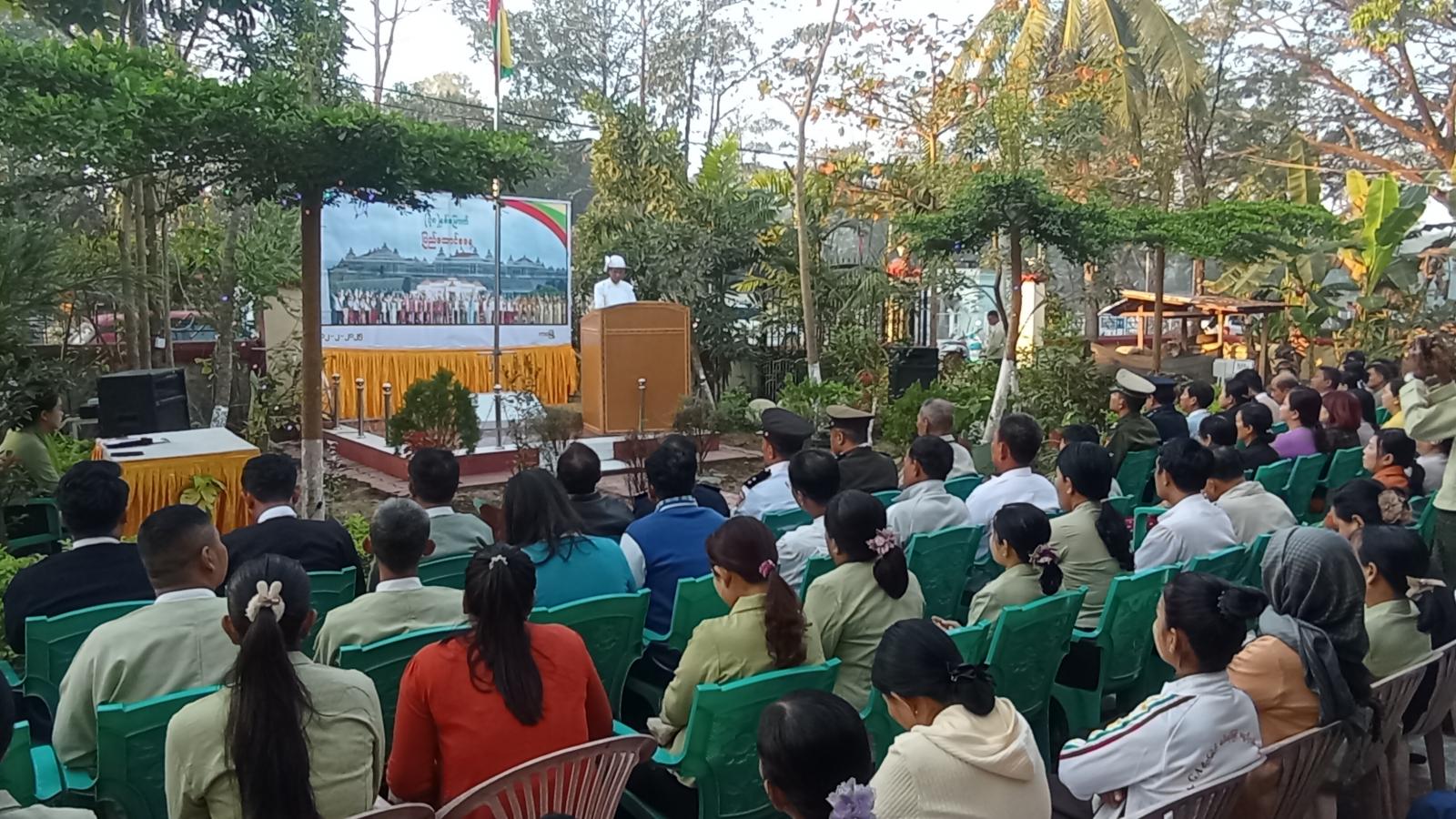 ဦးစွာ ခရိုင်/မြို့နယ်များအလိုက် စီမံအုပ်ချုပ်ရေးအဖွဲ့ဥက္ကဋ္ဌများနှင့် အခမ်းအနားသို့ တက်ရောက်လာကြသူများက ပြည်ထောင်စုသမ္မတမြန်မာနိုင်ငံတော်အလံအား အလေးပြုခြင်း၊ ကျဆုံးလေပြီးသော အာဇာနည်ခေါင်းဆောင်ကြီးများနှင့် ရဲဘော်အပေါင်းအား အလေးပြုခြင်းများ ဆောင်ရွက်ကြပြီး နိုင်ငံတော်စီမံအုပ်ချုပ်ရေးကောင်စီဥက္ကဋ္ဌ၊ နိုင်ငံတော်ဝန်ကြီးချုပ် ဗိုလ်ချုပ်မှူးကြီး သတိုးမဟာသရေစည်သူ သတိုးသီရိသုဓမ္မမင်းအောင်လှိုင်ထံမှ ပေးပို့သော (၇၈) နှစ်မြောက် ပြည်ထောင်စုနေ့သဝဏ်လွှာကို သက်ဆိုင်ရာတာဝန်ရှိသူများက ဖတ်ကြားကြသည်။