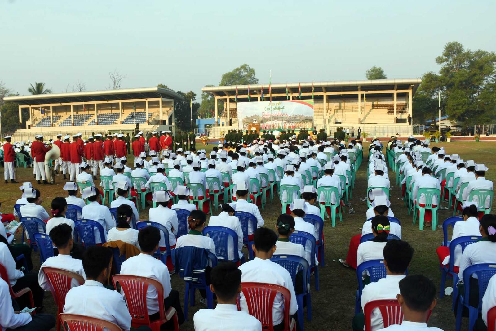(၇၈)နှစ်မြောက် ပြည်ထောင်စုနေ့နိုင်ငံတော်အလံတင်အခမ်းအနား၊ နိုင်ငံတော်အလံအလေးပြုခြင်းနှင့်သဝဏ်လွှာဖတ်ကြားခြင်းအခမ်းအနားကို ယနေ့နံနက်ပိုင်းက တနင်္သာရီတိုင်းဒေသကြီး၊ ထားဝယ်မြို့၊ ရွှေဝယ်သီရိအားကစားကွင်း၌ ကျင်းပသည်။