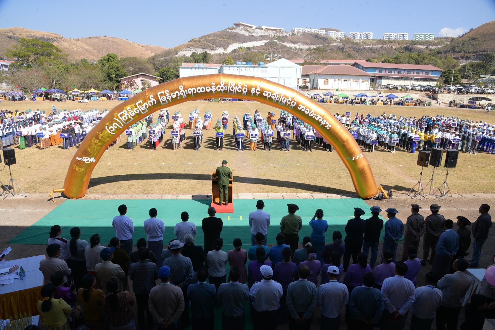 ဆက်လက်၍ ထမနဲထိုးပြိုင်ပွဲကို၊ ပြည်နယ်တရားလွှတ်တော် တရားသူကြီးချုပ် ဦးသန်းဦးလွင်၊ ပြည်နယ်လုံခြုံရေးနှင့်နယ်စပ်ရေးရာဝန်ကြီး ဗိုလ်မှူးကြီး စိန်ဝင်း၊ ပြည်နယ်သယံဇတရေးရာဝန်ကြီး ဦးစိုင်လိတ်၊ ပြည်နယ်လူမှုရေးရာဝန်ကြီး ဦးမင်းမင်းလွင်၊ ပြည်နယ်လမ်းပန်းဆက်သွယ်ရေးဝန်ကြီး ဦးနေဝင်းအောင်တို့က ဖဲကြိုးဖြတ်ဖွင့်လှစ်ပေးပြီး ထမနဲထိုးပြိုင်ပွဲအား ဒိုင်ချုပ်မှကသေနတ်ပစ်ဖောက်၍ ပြိုင်ပွဲကို စတင်ယှဥ်ပြိုင်ကြကာ ပြည်နယ်တရားလွှတ်တော် တရားသူကြီးချုပ်နှင့် တာဝန်ရှိသူများသည် ထမနဲထိုးပြိုင်ကို လှည့်လည်ကြည့်ရှုအားပေးခဲ့ကြောင်း သိရသည်။