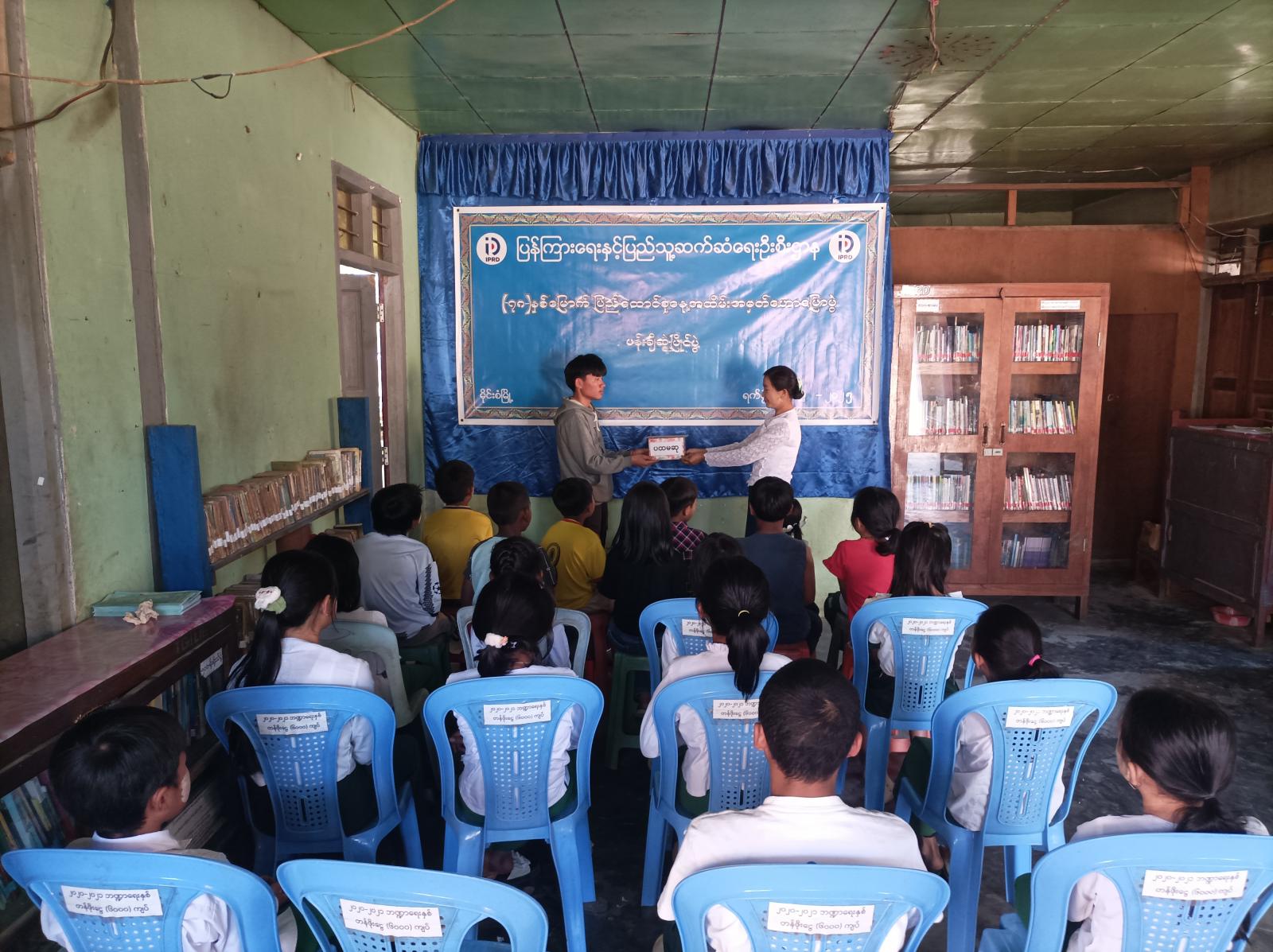 ထို့နောက် တက်ရောက်လာကြသော ကျောင်းသား/ကျောင်းသူများက ပြန်ကြားရေးနှင့်ပြည်သူ့ဆက်ဆံရေးဦးစီးဌာနမှ ခင်းကျင်းပြသထားသည့် မူးယစ်ဆေးဝါးအန္တရာယ်အသိပညာပေး နံရံကပ်စာစောင်နှင့် လျှပ်စစ်မီးချွေတာသုံးစွဲရေး အသိပညာပေး နံရံကပ်စာစောင်များကို စိတ်ပါဝင်စားစွာဖြင့် လေ့လာကြည့်ရှုခဲ့ကြပြီး ၂၀၂၅ ခုနှစ်၊ (၇၈)နှစ်မြောက် ပြည်ထောင်စုနေ့အထိမ်းအမှတ် သတင်းစကား လက်ကမ်းစာစောင်များ ဖြန့်ဝေခဲ့သည်။