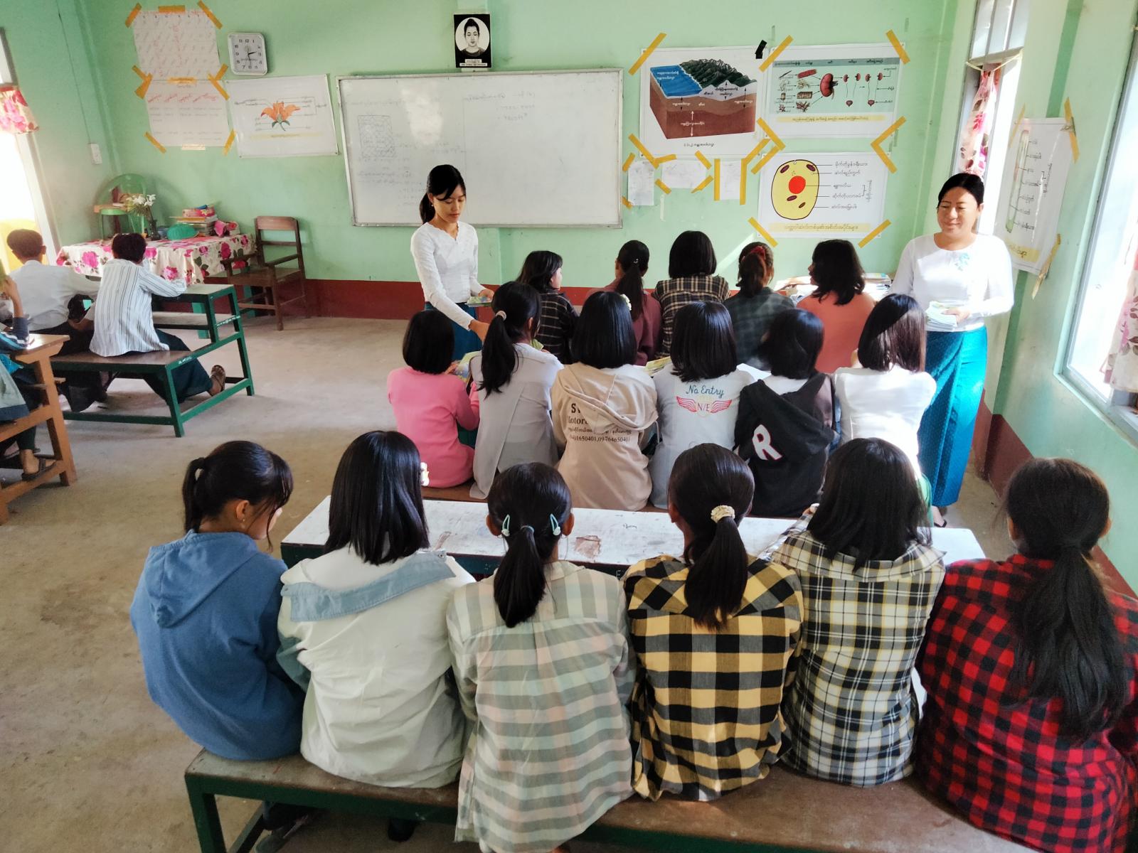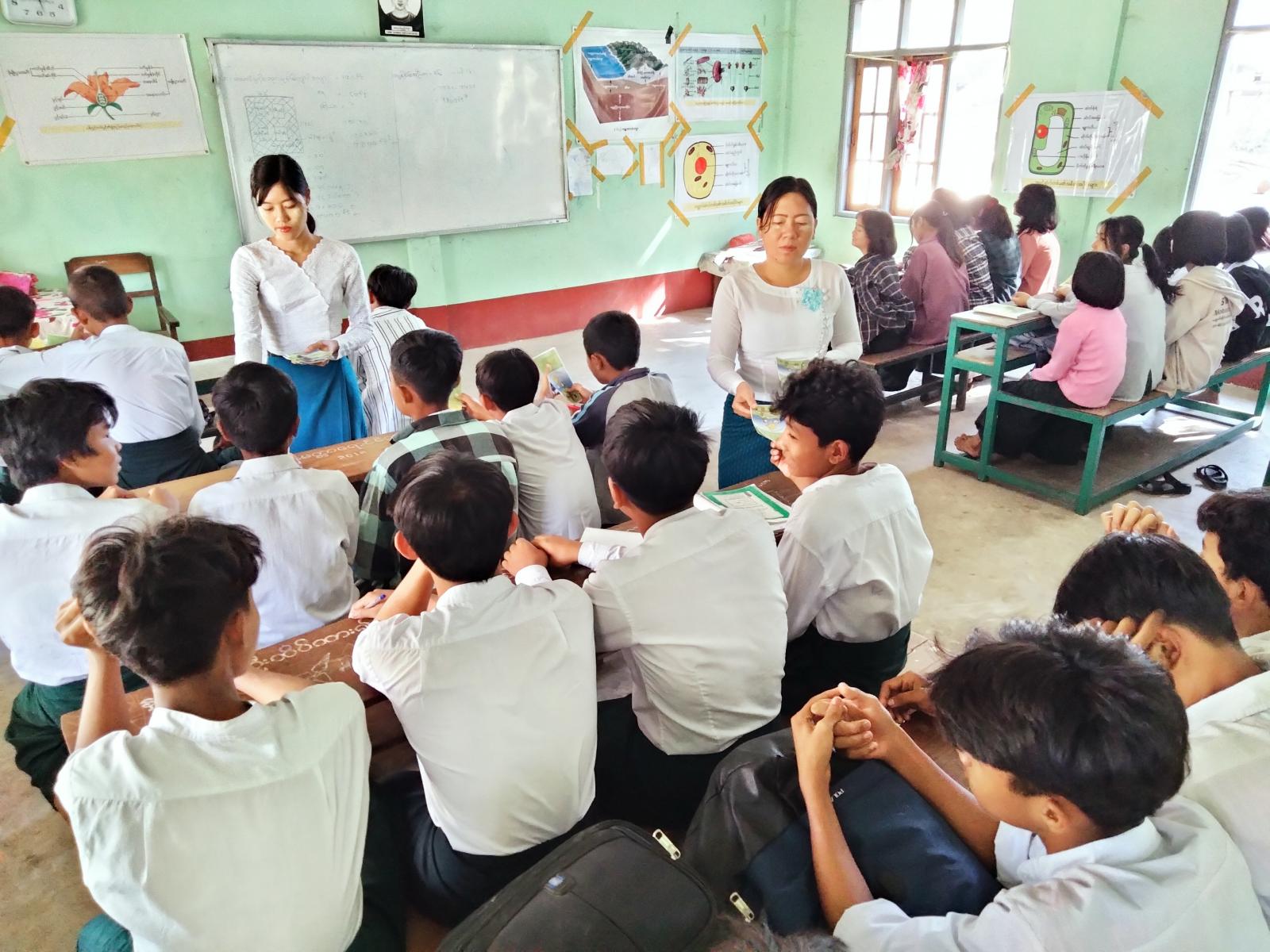 မကွေးတိုင်းဒေသကြီး နတ်မောက်မြို့နယ် ပြန်ကြားရေးနှင့်ပြည်သူ့ဆက်ဆံရေးဦးစီးဌာနမှ ကလေးအလုပ်သမားပပျောက်ရေးဆိုင်ရာ အသိပညာပေးလက်ကမ်းစာစောင်များကို ယနေ့နံနက် ၉ နာရီအချိန်က အခြေခံပညာအလယ်တန်းကျောင်း(တမာပင်)ရှိ ကျောင်းသား/သူများအား ဖြန့်ဝေပေးခဲ့သည်။ အဆိုပါလက်ကမ်းစာစောင်တွင် ကလေးသူငယ်အခွင့်အရေးများဆိုင်ရာ ဥပဒေ(၂၀၁၉ ခုနှစ်) ဥပဒေပုဒ်မ ၁၀၁ (ခ)၊ ကလေးအလုပ်သမားဆိုသည်မှာ၊ ကလေးသူငယ်အခွင့်အရေးဆိုင်ရာဥပဒေ (၂၀၁၉ခုနှစ်) ဥပဒေပုဒ်မ ၁၀၃၊ မြန်မာနိုင်ငံကလေးအလုပ်သမားပပျောက်ရေးဆိုင်ရာ အမျိုးသားအဆင့်လုပ်ငန်းစီမံချက် ရည်မှန်းချက်(၆)ရပ်၊ ကလေးသူငယ်အခွင့်အရေးများဆိုင်ရာဥပဒေ(၂၀၁၉ ခုနှစ်) ဥပဒေပုဒ်မ (ခ)(၁)၊ ကလေးအလုပ်သမားများ၏ အလုပ်ချိန်ကန့်သတ်ချက်၊ ကလေးသူငယ်အခွင့်အရေးများဆိုင်ရာ ဥပဒေ(၂၀၁၉ ခုနှစ်) ဥပဒေပုဒ်မ ၁၀၂၊ ကလေး၊ လူရွယ်၊ လူငယ်၏ အဓိပ္ပာယ်ဖော်ပြချက် စသည့်အသိပညာပေးအကြောင်းအရာများ ဝေဝေဆာဆာဖော်ပြပါရှိပြီး ကျောင်းသား/သူများဖတ်ရှု၍ အသိပညာဗဟုသုတရရှိစေရန် ရုံးဝန်ထမ်းများက လိုက်လံဖြန့်ဝေပေးခဲ့သည်။
