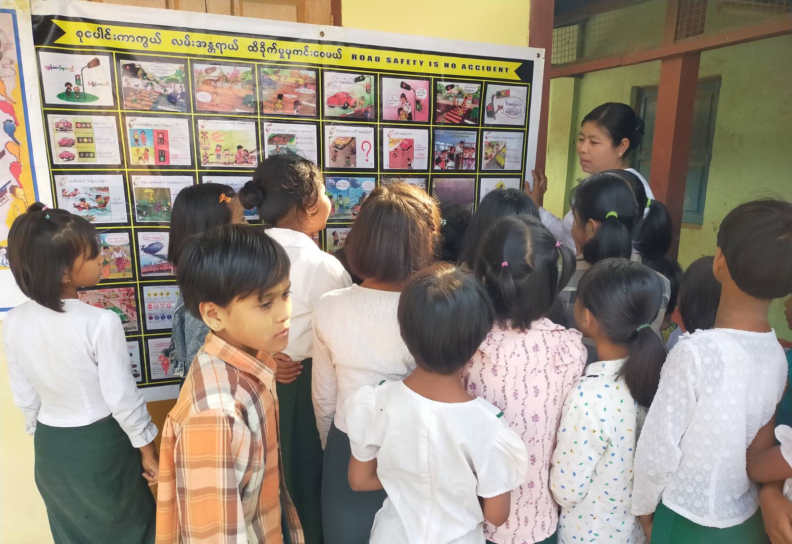 ဆက်လက်၍ ပြန်ကြားရေးနှင့်ပြည်သူ့ဆက်ဆံရေးဦးစီးဌာနမှဝန်ထမ်းများက ကလေးများဉာဏ်စွမ်းရည်ဖွံ့ဖြိုးစေရေးနှင့် စာဖတ်သည့်အလေ့အကျင့်ရရှိစေရန်၊ မူးယစ်ဆေးဝါးအန္တရာယ် လူကုန်ကူးမှုအရာယ်အသိပညာပေး၊ ယာဉ်အန္တရာယ်ကင်းဝေးစေရေး ယာဉ်စည်းကမ်း၊ လမ်းစည်းကမ်းဆိုင်ရာ လိုက်နာဆောင်ရွက်သင့်သည့်အချက်များ စသည့် နံရံကပ်စာစောင်များကို ပြသဆောင်ရွက်ပေးခဲ့ကြောင်း သိရသည်။