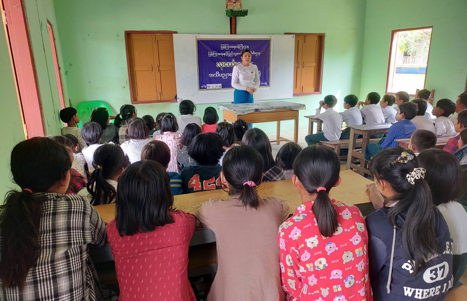 ထိုသို့ဆောင်ရွက်ရာတွင် ပြန်ကြားရေးနှင့်ပြည်သူ့ဆက်ဆံရေးဦးစီးဌာနမှ မြို့နယ်ဦးစီးမှူး ဒေါ်ဇာဇာငြိမ်းက မူးယစ်ဆေးဝါးအန္တရာယ်အကြောင်းအရာများ၊ လူကုန်ကူးမှုအန္တရာယ်အကြောင်းအရာများ စာဖတ်ခြင်းဖြင့် ရရှိသော အကျိုးကျေးဇူးများကို အသိပညာပေးဟောပြောခဲ့သည်။