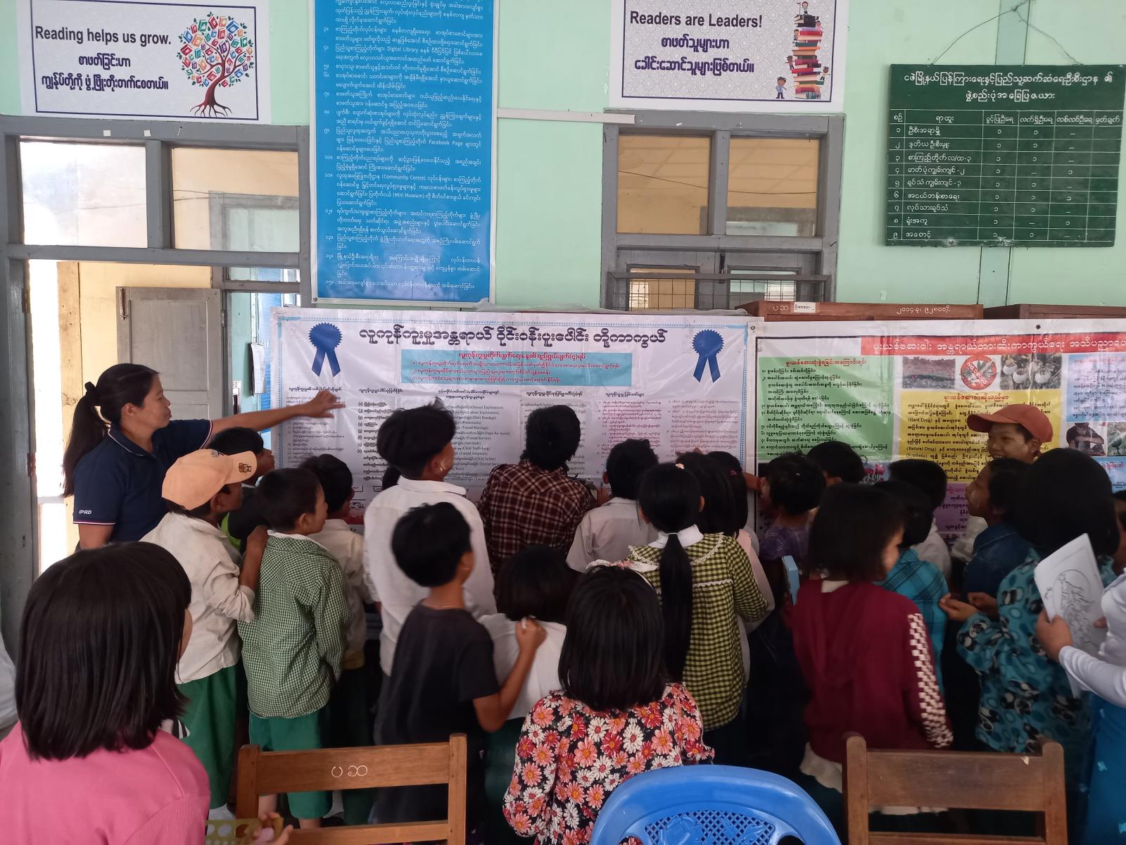 ရှေးဦးစွာ ငဖဲမြို့နယ်ပြန်ကြားရေးနှင့်ပြည်သူ့ဆက်ဆံရေးဦးစီးဌာန ဦးစီးအရာရှိ ဒေါ်ယုယုသိန်းက စာဖတ်ရှိန်မြှင့်တင်ရေး ပြပွဲပြိုင်ပွဲများကျင်းပပြုလုပ်ရခြင်းနှင့်ပတ်သက်၍ ဆွေးနွေးပြောကြားပြီး ကျောင်းသား/သူများ အသိပညာဗဟုသုတတိုးပွားရေးအတွက် စာပေဖတ်ရှုရေး၊ စာဖတ်ခြင်း၏အကျိုးကျေးဇူးများနှင့် ဒုတိယဦးစီးမှူး ဒေါ်ဥမ္မာကျော်က မိချောင်းနှင့်မျောက် ပုံပြင်ကို ကျောင်းသား/သူများအား အသိပညာပေး ပြောကြားသည်။