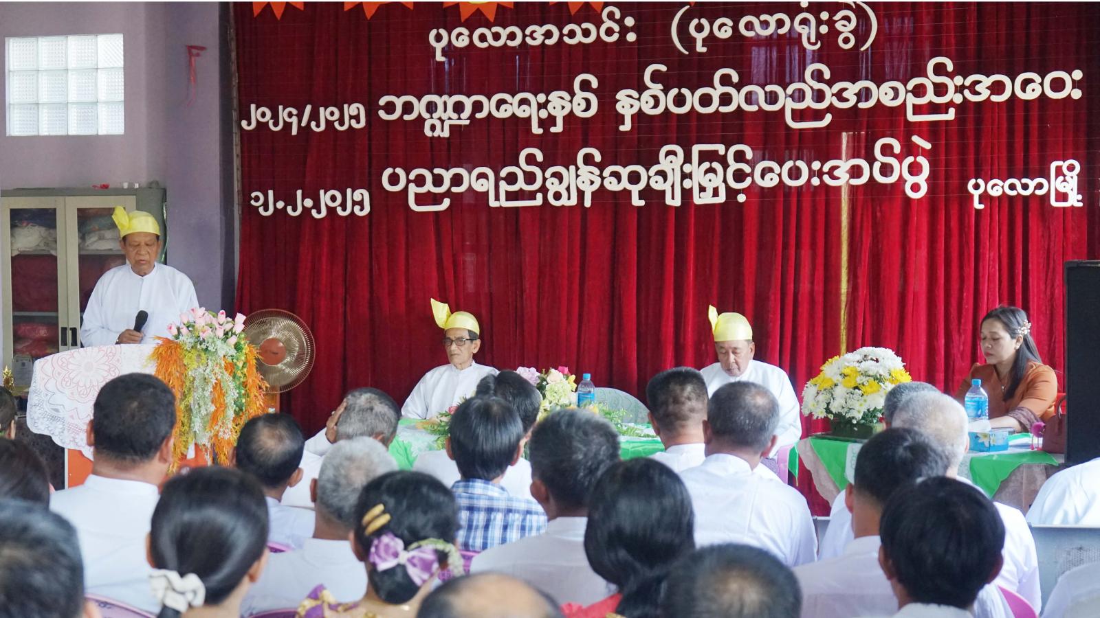 နှစ်ပတ်လည်အစည်းအဝေးတွင် ပုလောမြို့၊ ပုလောအသင်း (ပုလောခွဲရုံး) နာယကဦးတင်ကြွယ်က ပုလောအသင်းကို ၁၉၅၆ ခုနှစ် ဇွန်လ ၃ ရက်နေ့က ရန်ကုန်မြို့တွင်အဝေးရောက် ပုလောသူ၊ ပုလောသားများဖြင့် စတင်တည်ထောင်ခဲ့ပြီး ၆၉ နှစ်ရှိပြီကြောင်း၊ အသင်းဝင်ဦးရေ ၇၈၃၀ ဦးရှိ၍ အသင်းမှရရှိသည့် ရန်ပုံငွေဖြင့် အသင်းသူ/အသင်းသားများ၏ ပညာရေး၊ ကျန်းမာရေး၊ လူမှုရေး စသည့် ကိစ္စအရပ်ရပ်ကို ပံ့ပိုးကူညီပေးလျက်ရှိကြောင်း၊ အလားတူ ပညာသင်နှစ်အလိုက် ထူးချွန် ကျောင်းသား၊ ကျောင်းသူများကို ပညာရည်ချွန်ဆုများ ချီးမြှင့်ပေးလျက်ရှိကြောင်းနှင့် အသင်းသား/အသင်းသားများအနေဖြင့် အသင်း၏ ဆောင်ပုဒ်ဖြစ်သည့် စည်းလုံးခြင်းဖြင့် အောင်စေအံ့ဆိုသည့်အတိုင်း စည်းလုံးညီညွှတ်စွာဖြင့် ဆောင်ရွက်သွားရန် ပြောကြားခဲ့သည်။