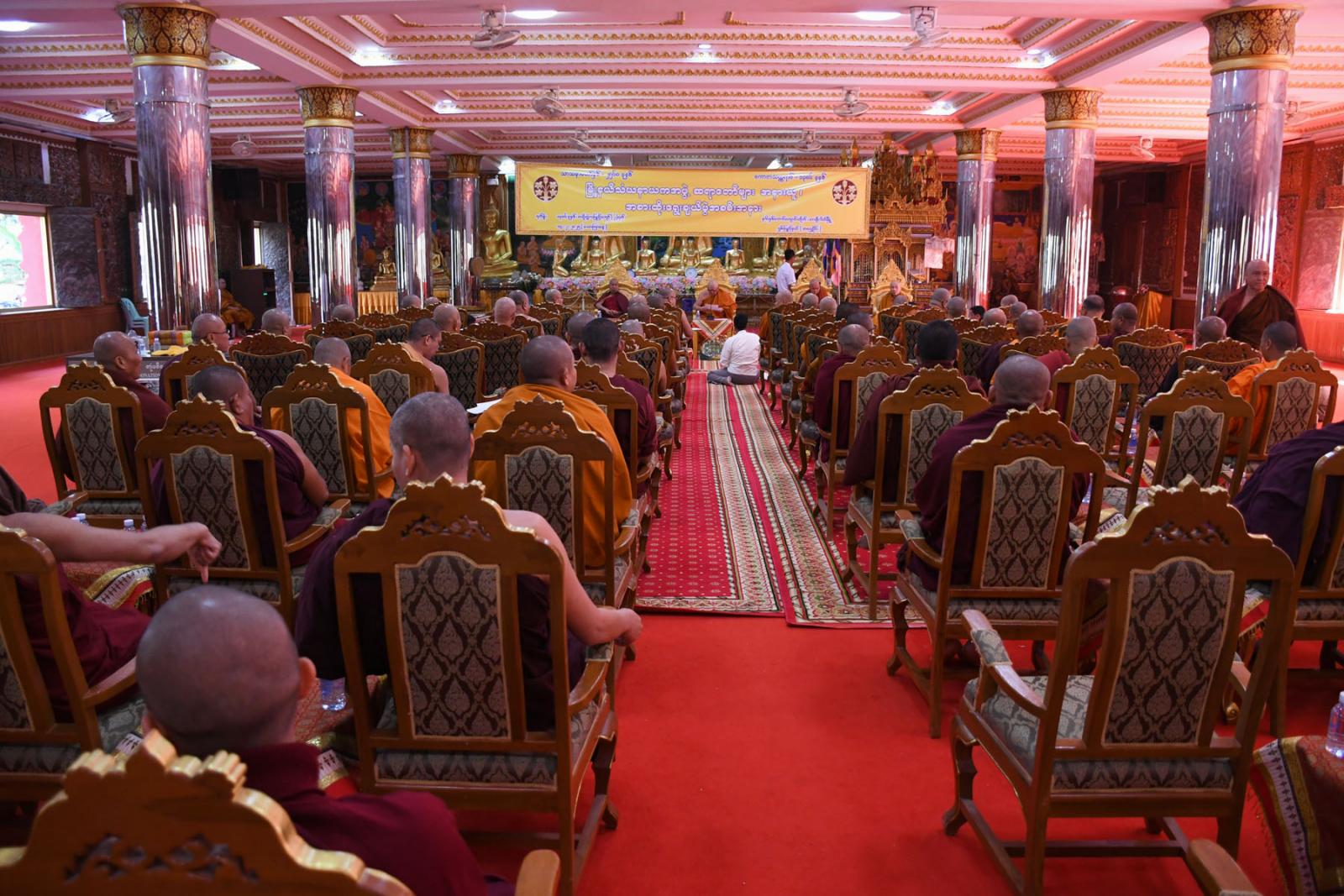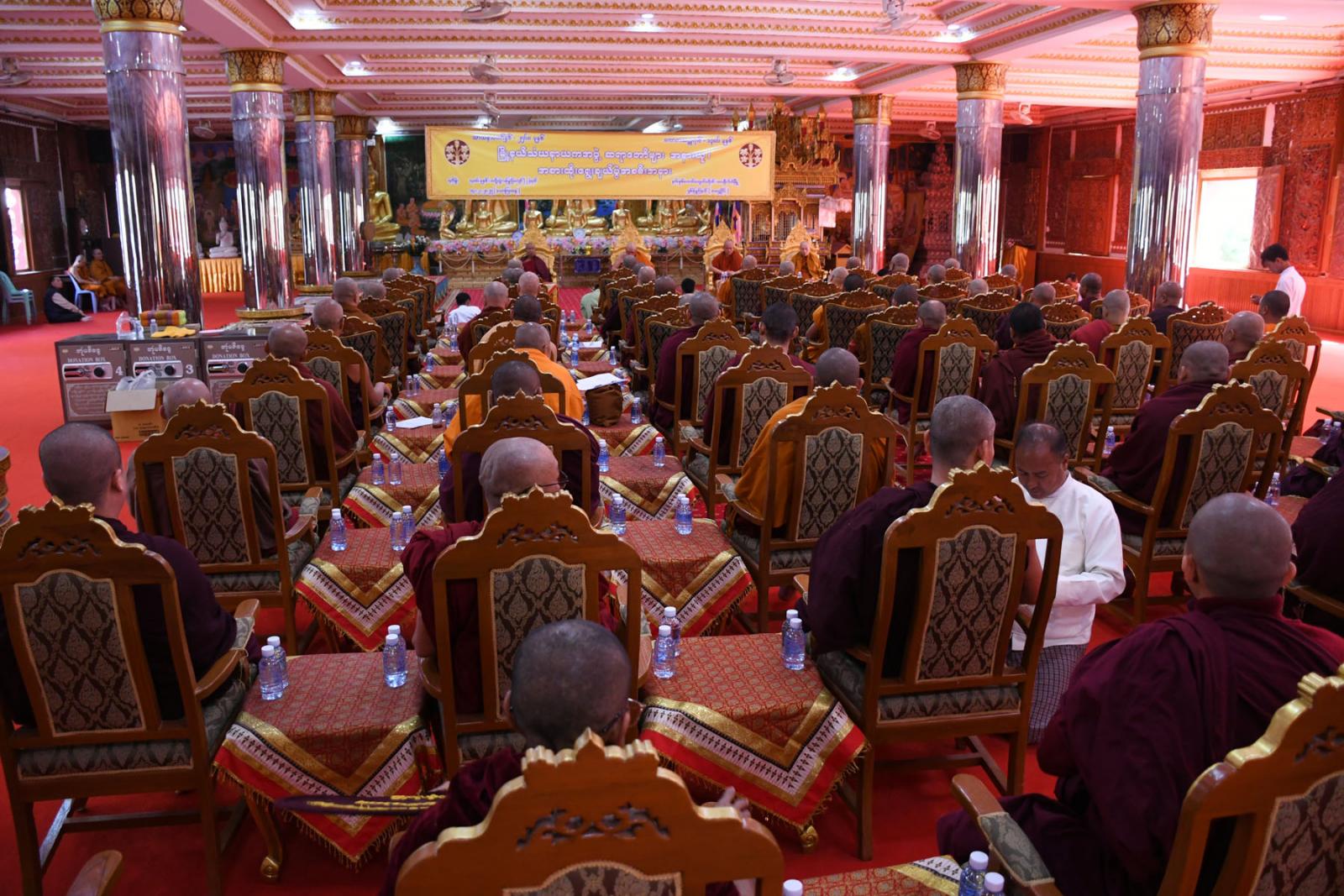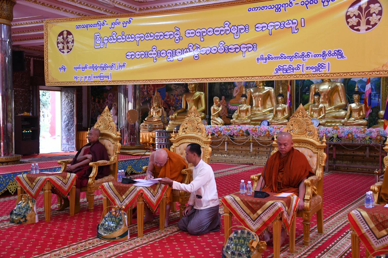 ထို့နောက် သဘာပတိဆရာတော်ကြီးက အစည်းအဝေးဖွင့်ဩဝါဒကထာ မိန့်ကြားကာ ခရိုင် မြို့နယ်စီမံအုပ်ချုပ်ရေးအဖွဲ့ ဥက္ကဋ္ဌ ဦးမင်းကိုက သာသနာရေးဆိုင်ရာများ လျှောက်ထားပြီး ကြီးကြပ်ရေးအဖွဲ့ဆရာတော်များထံ လှူဖွယ်များ ဆက်ကပ်လှူဒါန်းသည်။