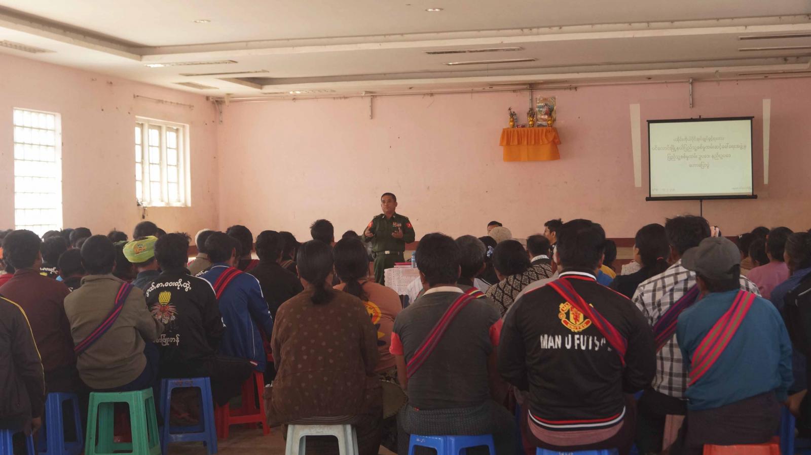 အသိပညာပေးဟောပြောပွဲတွင် မြို့နယ်စီမံအုပ်ချုပ်ရေးအဖွဲ့ဥက္ကဋ္ဌ ဦးတင့်ဇော်ထက်က ပြည်သူ့ စစ်မှုထမ်းဥပဒေ၊ နည်းဥပဒေအရ အကြုံဝင်သူများအကြောင်းကိုလည်းကောင်း၊ မြို့နယ်ပြည်သူ့ စစ်မှုထမ်းဆင့်ခေါ်ရေးအဖွဲ့ အတွင်းရေးမှူး ဦးစိန်လှမောင်က ပြည်သူ့စစ်မှုထမ်း နည်းဥပဒေအရ ဆောင်ရွက်ချက်များအကြောင်းကိုလည်းကောင်း၊ မြို့နယ်စီမံအုပ်ချုပ်ရေးအဖွဲ့ဝင် ဗိုလ်မှူးကျော်စိုးမြင့်က ပြည်သူ့စစ်မှုထမ်းတစ်ဦး၏ခံစားနိုင်မည့် အကျိုးခံစားခွင့်များအကြောင်းကို လည်းကောင်း ရှင်းလင်းဆွေးနွေးသည်။
