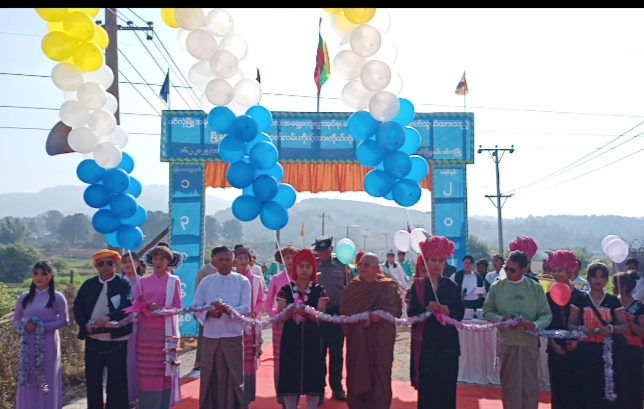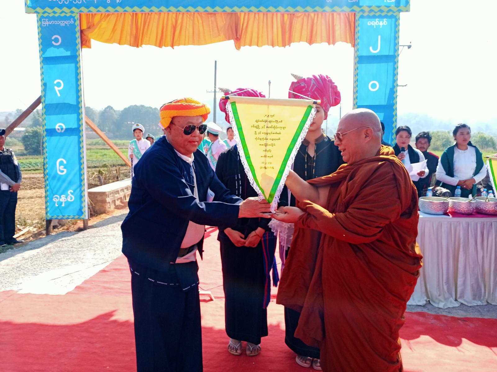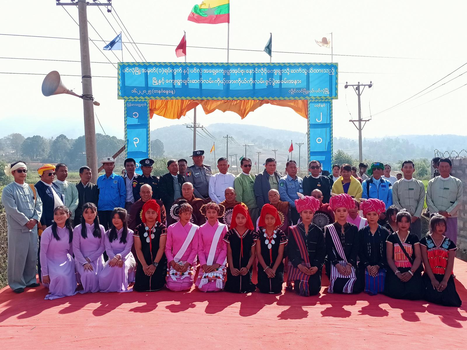 ထို့နောက် လမ်းဖြစ်မြောက်ရေးကော်မတီဥက္ကဋ္ဌ ဦးခွန်စိုးမြင့်မှ ကတ္တရာလမ်းအဆင့်မြှင့်တင်ခြင်းဆိုင်ရာ ရှင်းလင်းတင်ပြခြင်းနှင့် ကျေးဇူးတင်စကား ပြောကြားခဲ့ပြီးနောက် ကတ္တရာလမ်းအဆင့်မြှင့်တင်ခြင်း လမ်းဖွင့်ပွဲ အထိမ်းအမှတ်အလံငယ်များအား ကြွရောက်လာသော ဧည့်သည်တော်များထံ ပေးအပ်ခဲ့ပါသည်။