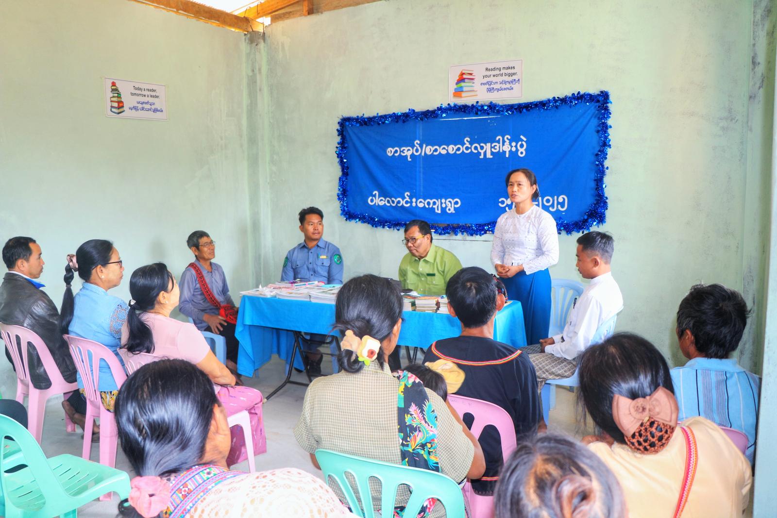 ရှေးဦးစွာ မြို့နယ်စီမံအုပ်ချုပ်ရေးအဖွဲ့ဥက္ကဋ္ဌ ဦးလှမျိုးက ကျေးရွာစာကြည့်တိုက်များ ရှင်သန်ခိုင်မာရေးအတွက် ကျေးရွာနေပြည်သူများ ပူးပေါင်းဆောင်ရွက်ရေး၊ စာဖတ်ခြင်း၏ အကျိုးကျေးဇူးများနှင့်စပ်လျဉ်း၍ အမှာစကားပြောကြားခဲ့သည်။ ထို့နောက် မြို့နယ်ပြန်ကြားရေးနှင့်ပြည်သူ့ဆက်ဆံရေးဦးစီးဌာနမှ ဦးစီးအရာရှိ ဒေါ်အေးဝင်းခိုင်က စာအုပ်စာစောင် လှူဒါန်းပွဲကျင်းပရခြင်း၏ ရည်ရွယ်ချက်များကိုလည်းကောင်း၊ နယ်စပ်ဒေသနှင့် တိုင်းရင်းသားလူမျိုးများ ဖွံ့ဖြိုးတိုးတက်ရေးဦးစီးဌာန၊ မြို့နယ်ဖွံ့ဖြိုးမှုကြီးကြပ်ရေးရုံးမှ လက်ထောက်ညွှန်ကြားရေးမှူး ဦးအောင်ကျော်ခိုင်က အမှာစကားကိုလည်းကောင်း အသီးသီးပြောကြားခဲ့ကြသည်။