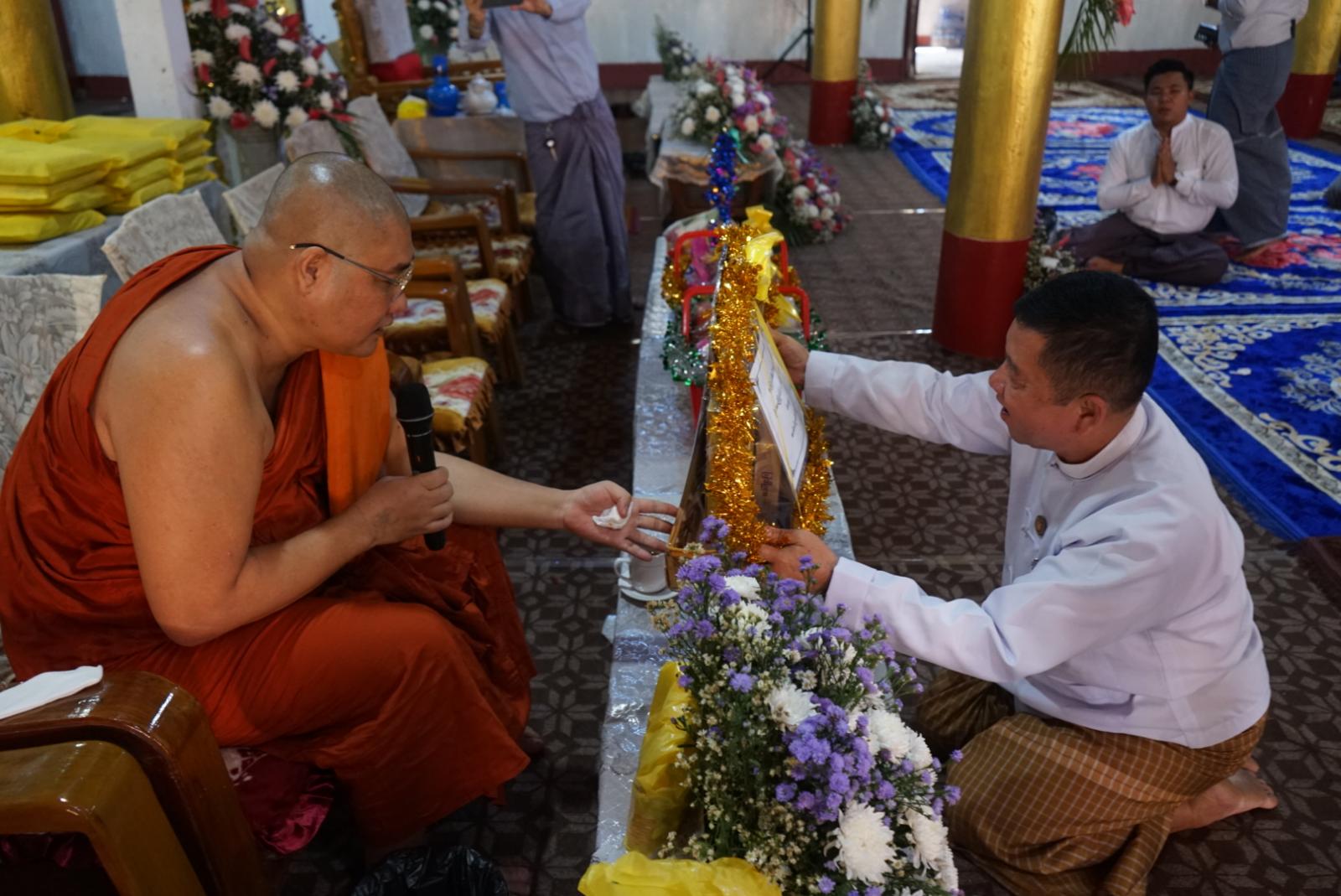 ရှေးဦးစွာ ပြည်နယ်ဝန်ကြီးချုပ်က နတ်မှော်ကျောင်းဆရာတော်အား ဖူးမြှော်ကြည်ညို၍ အလှူငွေများနှင့် လှူဖွယ်ဝတ္ထုပစ္စည်းများ ဆက်ကပ်လှူဒါန်းခဲ့ကြပြီး ပြည်နယ်ဝန်ကြီးချုပ်က သာသနာရေးဆိုင်ရာကိစ္စရပ်များ လျှောက်ထားခဲ့သည်။