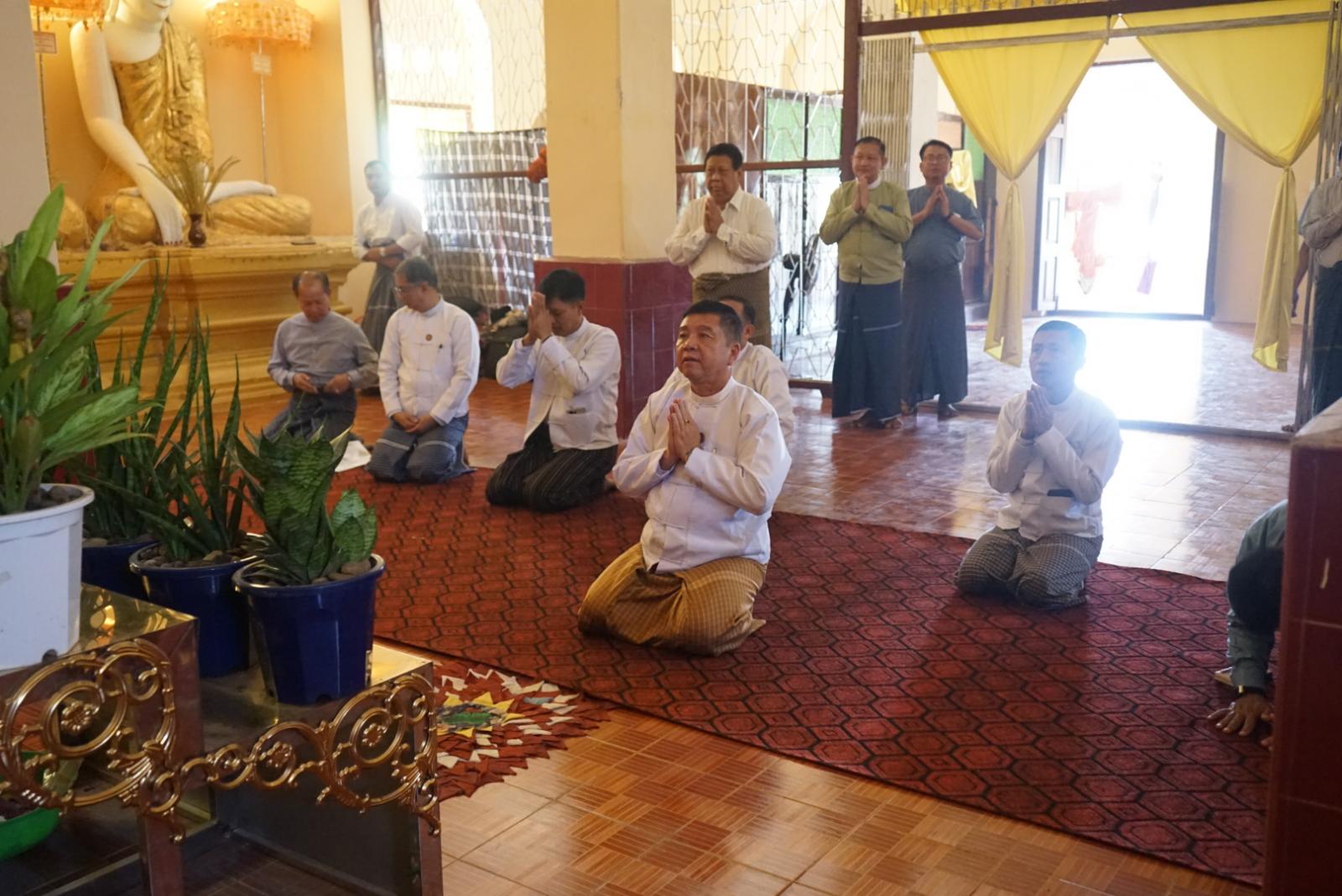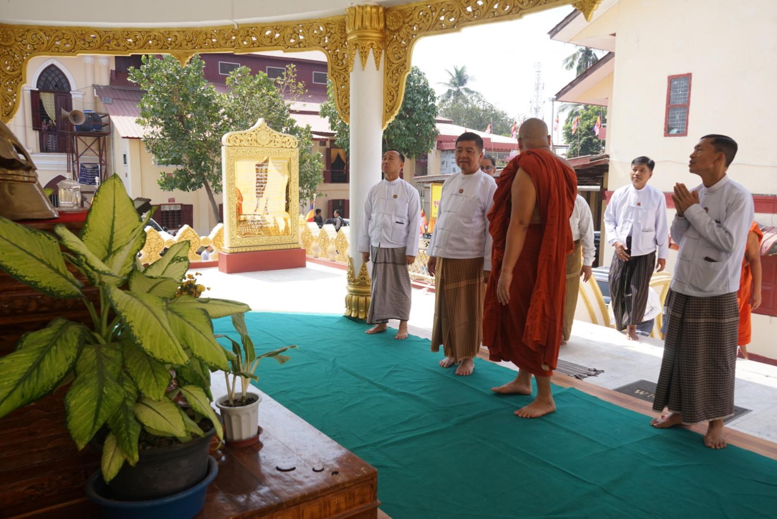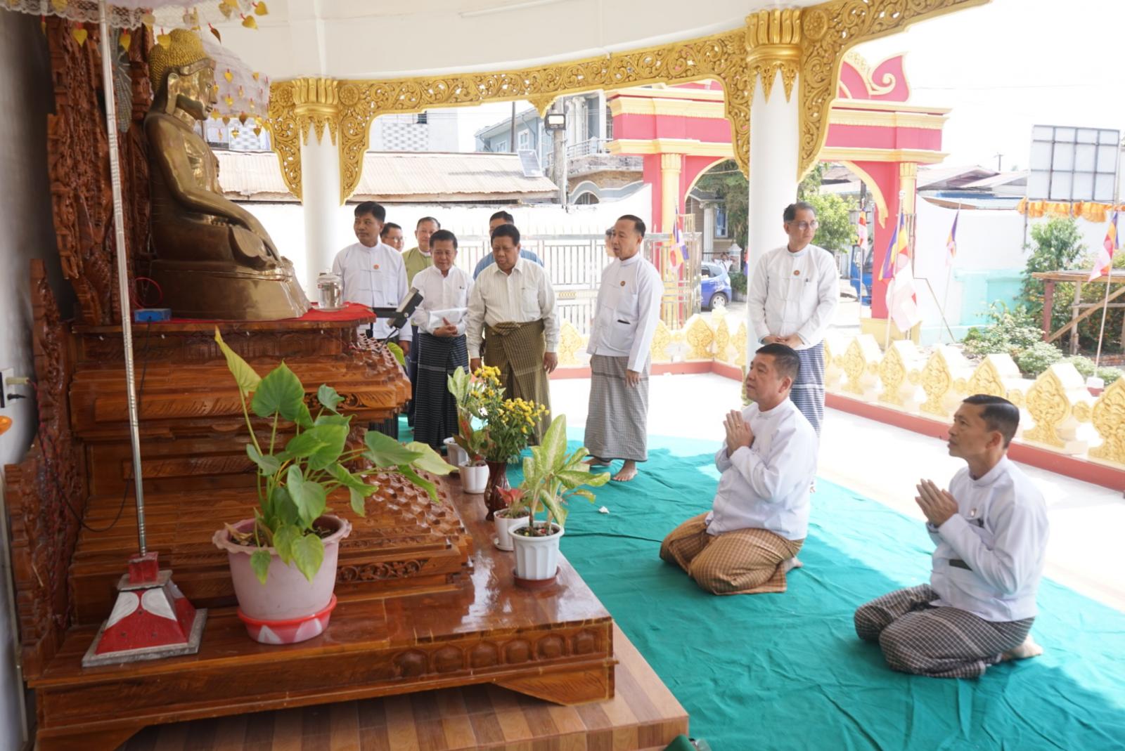 ဆက်လက်ပြီး ပြည်နယ်ဝန်ကြီးချုပ်က မော်လမြိုင်မြို့၊ မောင်ငံရပ်ကွက်ရှိ နတ်မှော်စာသင်တိုက်အတွင်း အသစ်တည်ထားကိုးကွယ်အပ်သော ‘ကောင်းမှုတော်စေတီတော်” နှင့် ကျောင်းမုခ်ဦး၊ စတီးတံခါး၊ ပညာဒီပကျောင်းဆောင်နှင့် မေတ္တာဒီပဘောဇနကျောင်းဆောင်၊ ကျောင်းဝန်းအတွင်း ကွန်ကရစ်ခင်းခြင်း၊ ရှေးနှစ်ပေါင်းများစွာက ဆောက်လုပ်လှူဒါန်းထားခဲ့သည့် ရှေးဟောင်းစေတီတော်၊ ဗုဒ္ဓရုပ်ပွားတော်မြတ်များအား ဖူးမျှော်ကြည်ညို၍ ရှေးဟောင်းသာသနိကအဆောက်အဦများအား လှည့်လည်ကြည့်ရှုစစ်ဆေးခဲ့ကြောင်း သိရသည်။