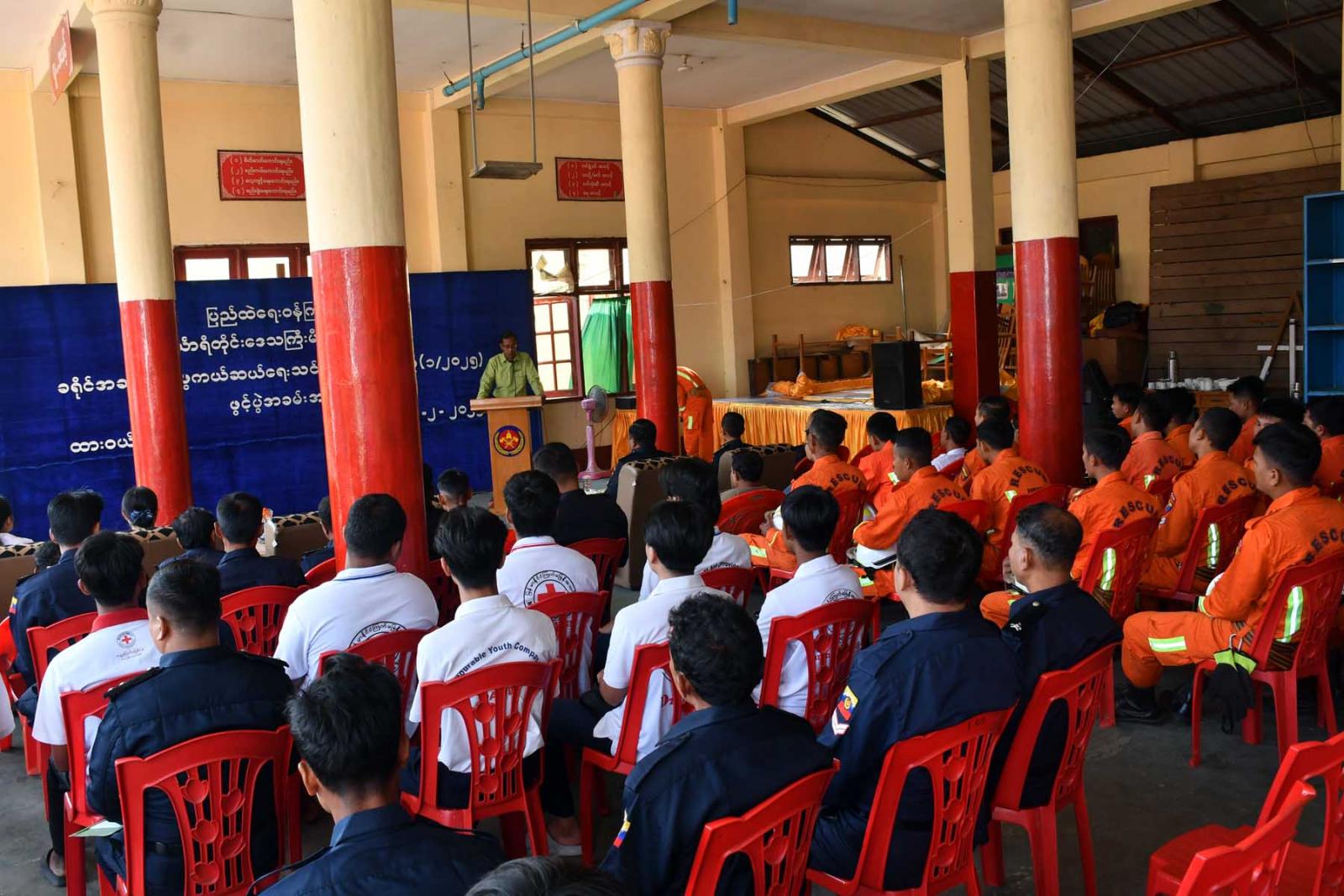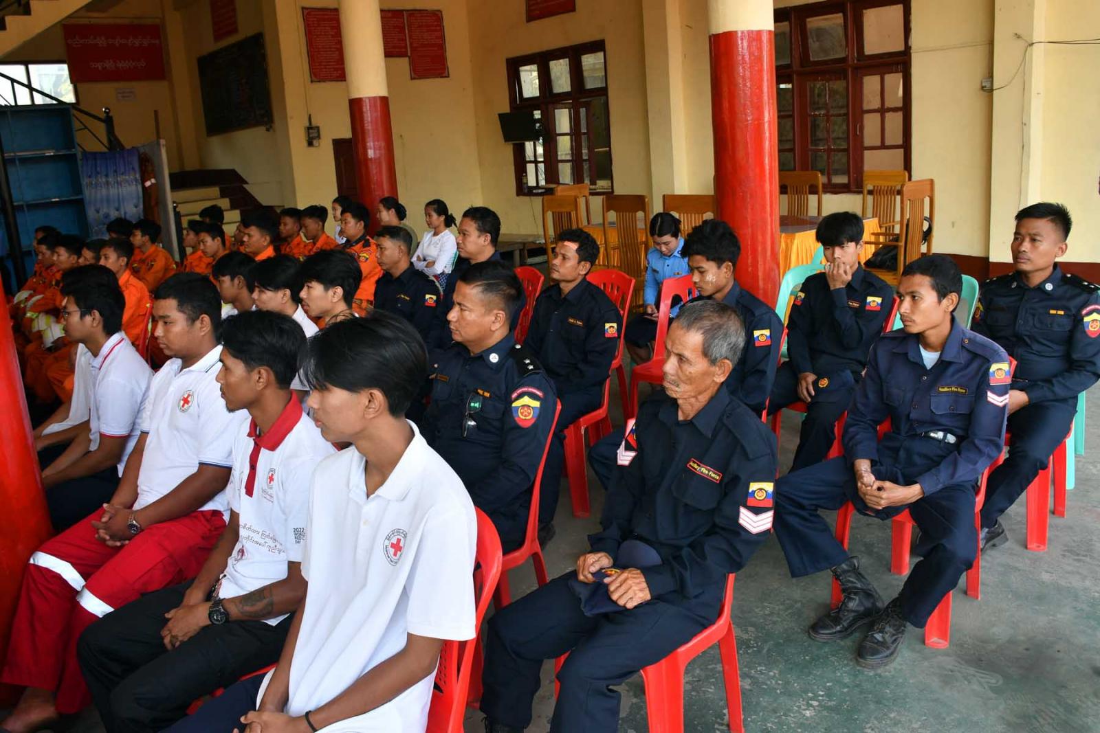 အခမ်းအနားတွင် ခရိုင်စီမံအုပ်ချုပ်ရေးအဖွဲ့ဥက္က ဦးဘုန်းမြတ်သူက မြန်မာနိုင်ငံအတွင်း ဖြစ်ပွားကြုံတွေ့လေ့ရှိသော မီးဘေးအပါအဝင်အခြားသောဘေးအန္တရာယ်များအကြောင်း၊ မီးသတ်တပ်ဖွဲ့၏ အခန်းကဏ္ဍ၊ ရှာဖွေကယ်ဆယ်ရေးလုပ်ငန်း အမျိုးမျိုးအနက်မှ မြို့ပြရှာဖွေကယ်ဆယ်ရေး ဘာသာရပ် ဖြစ်သည့် အခြေခံကြိုးချည်နည်းများ၊ အမြင့်ပိုင်း/အနိမ့်ပိုင်းများတွင် ကြိုးဖြင့် အသက်ကယ်နည်းစနစ်များ၊ တောင်ပေါ်အသက်ကယ်နည်းစနစ် (Mountain Rescue Technique)၊ လျှိုမြောင်အတွင်း အသက်ကယ်နည်းစနစ်၊( Valley Rescue Technique) ၊ဥရောပနိုင်ငံများတွင် အသုံးပြုလျက်ရှိသော ယာဉ်မတော်တဆထိခိုက်မှုဖြစ်စဉ်များတွင် အဖွဲ့လိုက်ကယ်ဆယ်ဆောင်ရွက်ရမည့် လုပ်ငန်းစဉ် (၉)ခု၊ ငလျင်ကြောင့်ပြိုကျ ပျက်စီးနေသောအစိတ်အပိုင်းများအောက်တွင် ပိမိ/ညပ်မိသူများကို ကယ်ဆယ်ရာတွင် အသုံးပြုသည့် (Cribbing) နည်းစနစ်များ၊ Air Lifting Bag အသုံးပြုခြင်းနည်းစနစ်များ၊ ယိုင်နဲ့ပြိုကျနိုင်သောအဆောက်အဦအား ထပ်မံပြိုကျမှုမရှိအောင် ဆောင်ရွက်ရမည့်ဒေါက် ထောက်ခြင်း/ ကျားကန်ခြင်း(Shoring Technique)များ၊ ပြိုကျအဆောက်အဦအစိတ်အပိုင်းများ အောက်တွင် ပိတ်မိနေသူများကို ကယ်ဆယ်ရာတွင်အသုံးပြုရမည့် ထွင်းဖောက်ဖြတ်တောက်ခြင်းနည်စနစ်များ၊ ရေတွင်းအသက်ကယ် နည်းစနစ်များ၊ အရေးပေါ်ဆေးအကာအကွယ်ပေးခြင်းနှင့် ရှေးဦးသူနာပြုစုနည်းများဖြစ်သော ဇီဝကမ္မဗေဒ၊ ခန္ဓာဗေဒဘာသာရပ်များစသည့် သင်ခန်းစာများကို ကျွမ်းကျင်နည်းပြများဖြင့် စနစ်တကျဖြင့် ထိထိရောက်ရောက် လေ့ကျင့်သင်ကြားသွားမှာဖြစ်ကြောင်း ပြောကြားသည်။