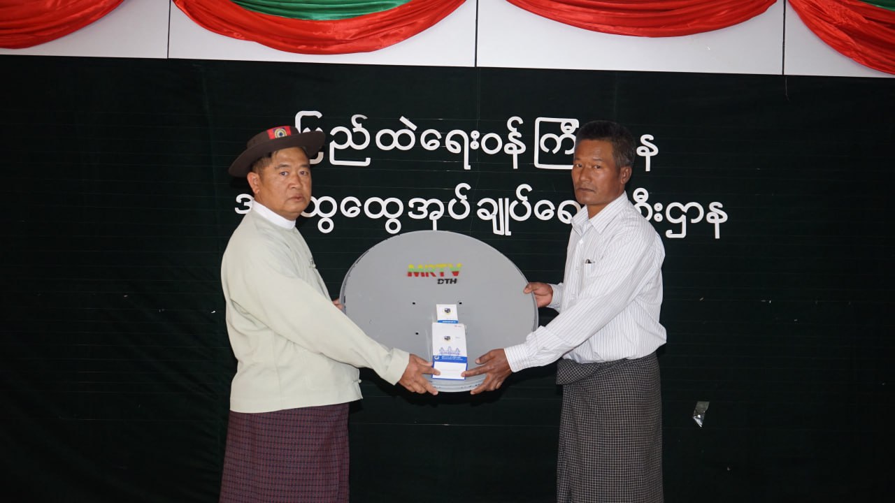 ထိုသို့ ပေးအပ်ရာတွင် ဌာနဆိုင်ရာရုံးများ၊ ဘုန်းတော်ကြီးသင်ပညာရေးကျောင်း၊ ပရဟိတကျောင်းများနှင့် စာကြည့်တိုက်များသို့ ပြန်ကြားရေးဝန်ကြီးဌာနမှ ပေးအပ်သော DTH စလောင်း (၃) စုံနှင့် Set Top Box (၂၂) လုံး တို့အား မြို့နယ်စီမံအုပ်ချုပ်ရေးအဖွဲ့ ဥက္ကဋ္ဌ ဦးမြင့်ထွန်းနှင့် အတွင်းရေးမှူး ရဲမှူးဌေးအောင်တို့က သက်ဆိုင်ရာတာဝန်ရှိသူများ လက်ဝယ်သို့ ခွဲဝေပေးအပ်ခဲ့ကြောင်း သိရသည်။