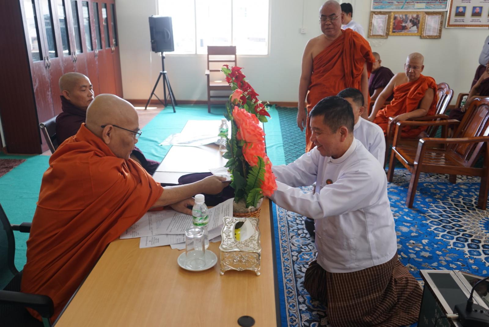 ထို့နောက် ပြည်နယ်ဝန်ကြီးချုပ် ဦးအောင်ကြည်သိန်းက သာသနာရေးဆိုင်ရာကိစ္စရပ်များအား လျှောက်ထားတင်ပြကာ အခမ်းအနားမှူးဆရာတော်က အနားယူခြင်းဆိုင်ရာလုပ်ငန်းစီမံချက်အရ အနားယူသောဆရာတော်များ၏ ဘွဲ့အမည်စာရင်းကိုကြေညာခြင်း၊ ပြန်လည်ရွေးချယ်နိုင်ရန်အတွက် မူလသတ်မှတ်ထားသည့် သက်ဆိုင်ရာနယ်မြေအလိုက် ဆရာတော်များက အမည်စာရင်းတင်သွင်းခြင်း၊ ထောက်ခံခြင်းနှင့် ရွေးချယ်ခြင်းများကို သံဃာအဖွဲ့အစည်းအခြေခံစည်းမျဉ်းများ၊ လုပ်ထုံးလုပ်နည်းများနှင့်အညီ ဆောင်ရွက်ခဲ့ကြသည်။