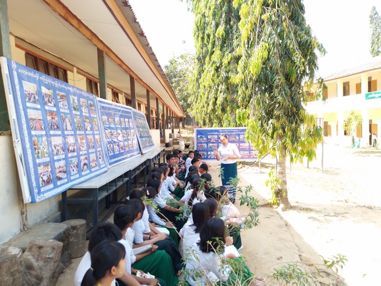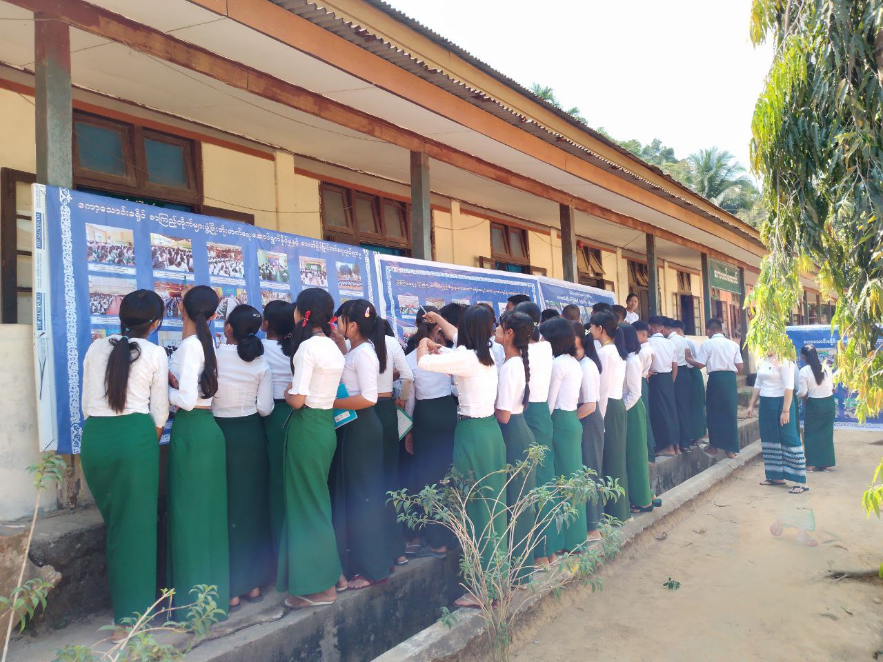 ထိုနောက် ကျောင်းသား/ကျောင်းသူများက စာကြည့်တိုက်ဖွံ့ဖြိုးတိုးတက်ရေးနှင့် စာဖတ်ရှိန်မြှင့်တင်ရေးလှုပ်ရှားမှုမှတ်တမ်းဓာတ်ပုံများအား စိတ်ပါဝင်စားစွာကြည့်ရှုခဲ့ကြောင်း သိရသည်။