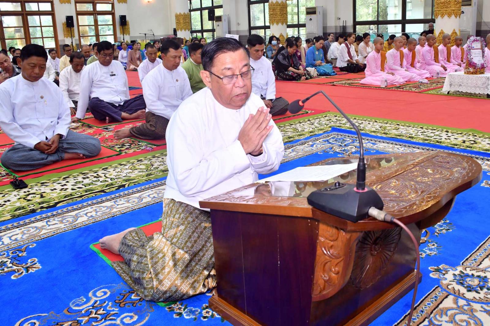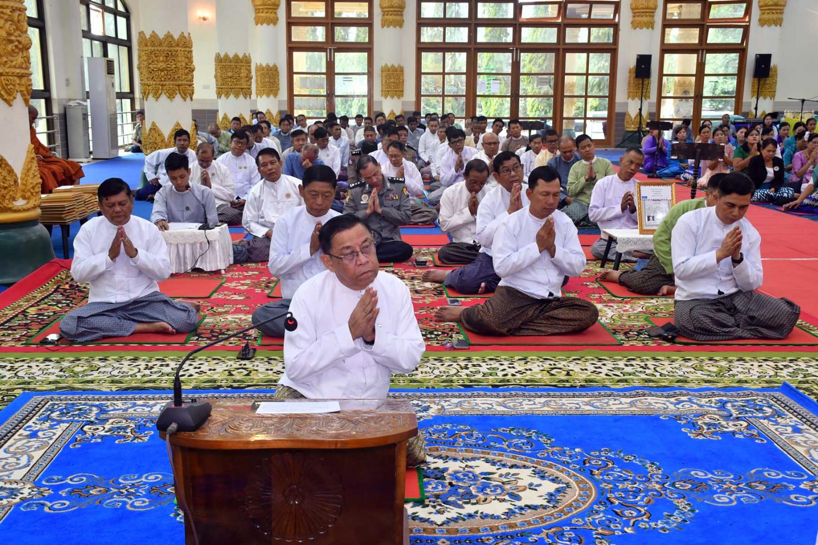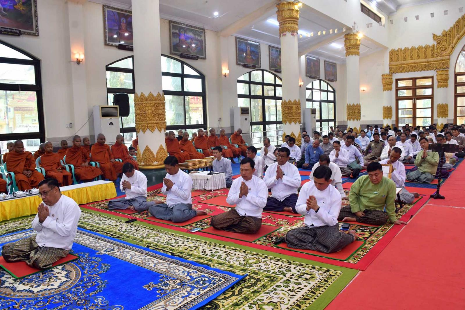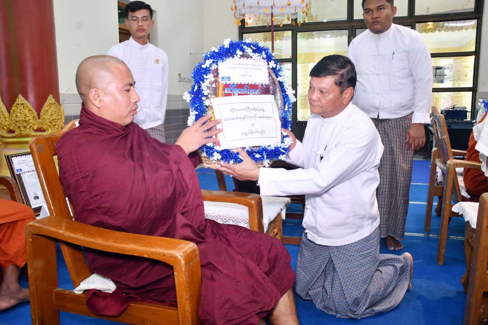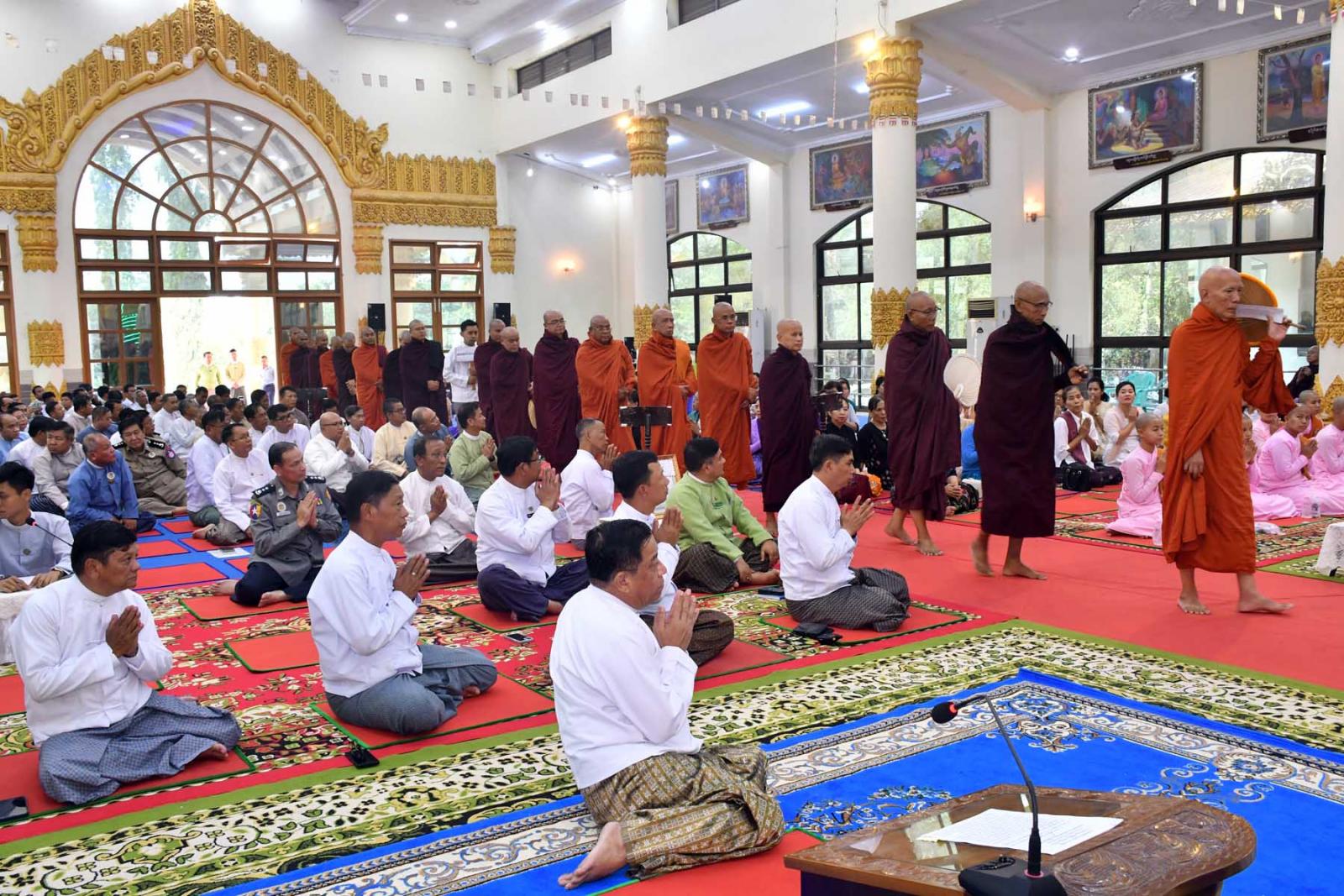 ထို့နောက်ဆရာတော် သံဃာတော်အရှင်သူမြတ်များက ရွတ်ပွားသရဇ္စျာယ်ချီးမြှင့်တော်မူသော အန္တရာယ်ကင်းပရိတ်တရားတော်များ နာယူကြည်ညိုပြီး တိုင်းဒေသကြီးဝန်ကြီးချုပ် ဦးမြတ်ကိုက သာသနာရေးဆိုင်ရာများ လျှောက်ထားကာ ကြွရောက်တော်မူလာကြသောဆရာတော်ကြီးများအား တာဝန်ရှိသူများက လှူဖွယ်ဝတ္ထုပစ္စည်းများ ဆက်ကပ်လှူဒါန်းသည်။