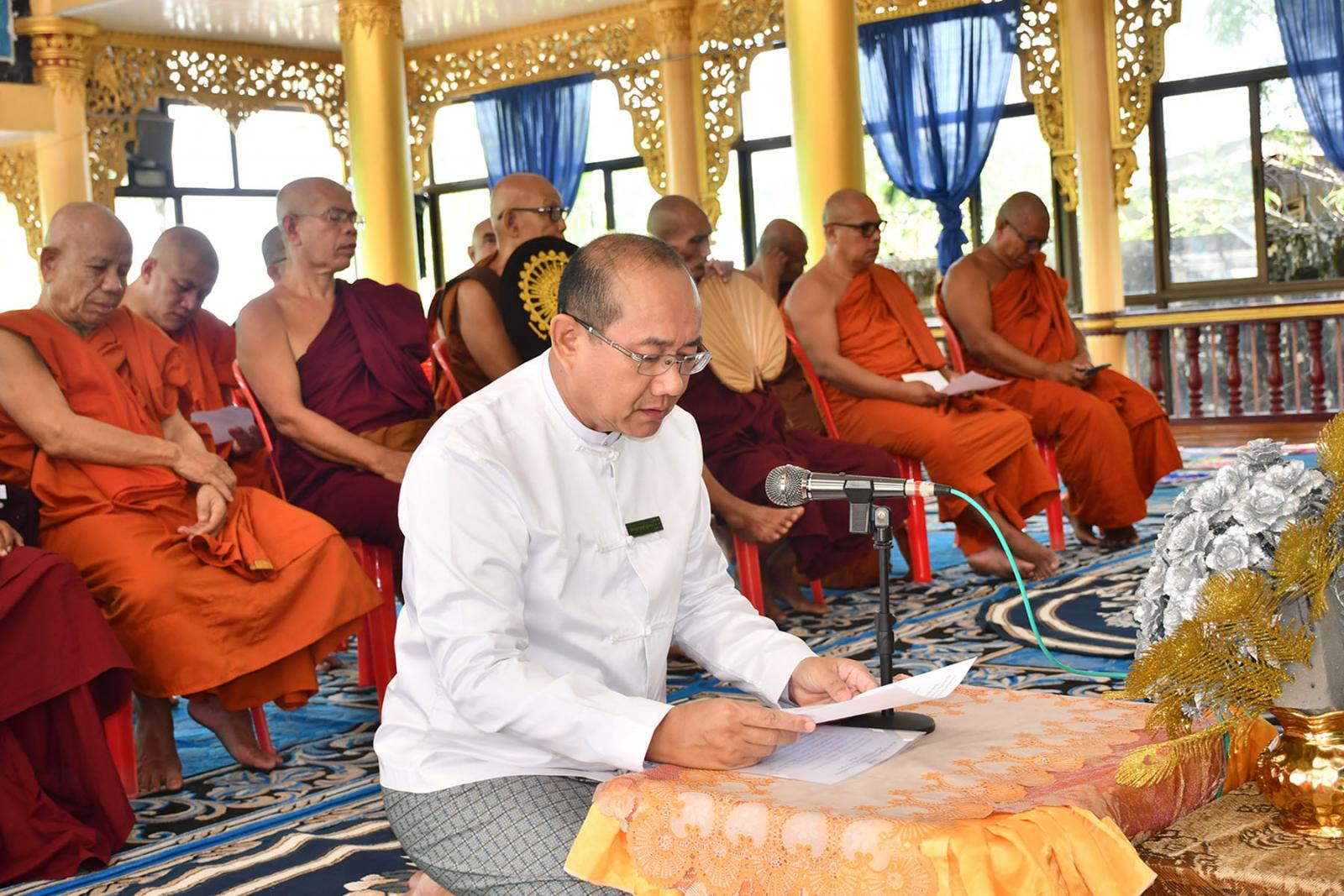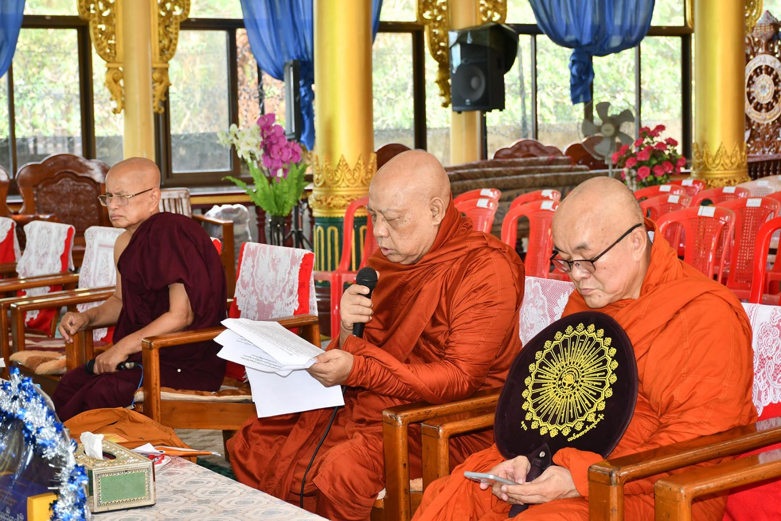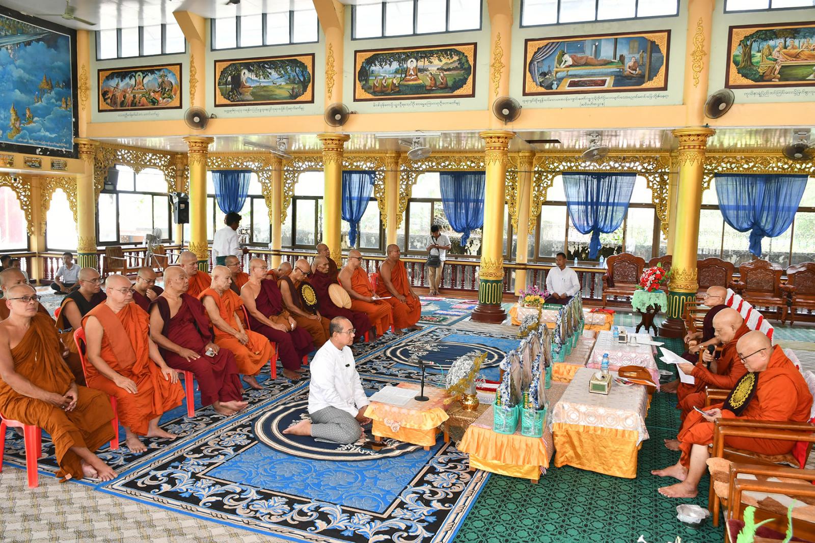 တိုင်းဒေသကြီး သံဃနာယကအဖွဲ့ဝင်များ အနားယူခြင်းနှင့်အစားထိုးရွေးချယ်ခြင်း သံဃာ့ဝန်ဆောင်အစည်းအဝေးကို ဆရာတော်၊ သံဃာတော်များက နမောတဿ(၃)ကြိမ်ရွတ်ဆို ဘုရားကန့်တော့၍ စတင်ခဲ့ကြပြီး အစည်းအဝေးသဘာပတိ ဆရာတော်အဖြစ် နိုင်ငံ တော် သံဃမဟာနာယကအဖွဲ့ အဖွဲ့ဝင် အဂ္ဂမဟာပဏ္ဍိတ၊ အဂ္ဂမဟာသဒ္ဓမ္မဇောတိကဓဇ ဘဒ္ဒန္တဝိမလ ကန်သာကျောင်းတိုက်ဆရာတော်က ဆောင်ရွက်၍ ဩဝါဒကထာများ မိန့်ကြားသည်။