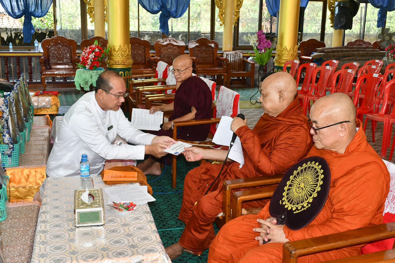 ထို့နောက် တိုင်းဒေသကြီး ဝန်ကြီးချုပ်ကိုယ်စား မြိတ်ခရိုင်စီမံအုပ်ချုပ်ရေးအဖွဲ့ဥက္ကဋ္ဌ ဦးမျိုးဦးက သာသနာရေးဆိုင်ရာများ လျှောက်ထားပြီး ဆရာတော်များအား လှူဖွယ်ဝတ္ထုများ ဆက်ကပ်လှူဒါန်းသည်။ အစည်းအဝေးတွင် တိုင်းဒေသကြီး သံဃနာယကအဖွဲ့ အနားယူခြင်းနှင့် အစားထိုးပြန်လည်ရွေးချယ်ခြင်းကို သံဃနာယကအဖွဲ့ဝင် ပြန်လည်ရွေးချယ်ခြင်းဆိုင်ရာ သံဃာ့အဖွဲ့အစည်း လုပ်ထုံးလုပ်နည်းများနှင့်အညီ တနင်္သာရီတိုင်းဒေသကြီး သံဃနာယကအဖွဲ့ဝင် ဆရာတော်(၇)ပါးအား ရွေးချယ်ခဲ့ကြပြီး အစည်းအဝေးကို ဗုဒ္ဓသာသနံ စိရံတိဌတု (၃)ကြိမ်ရွတ်ဆိုဆုတောင်း၍ ရုပ်သိမ်းခဲ့ကြကြောင်း သိရသည်။