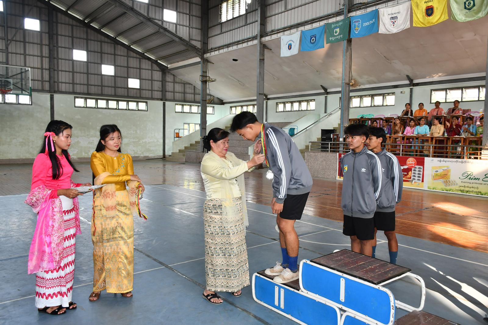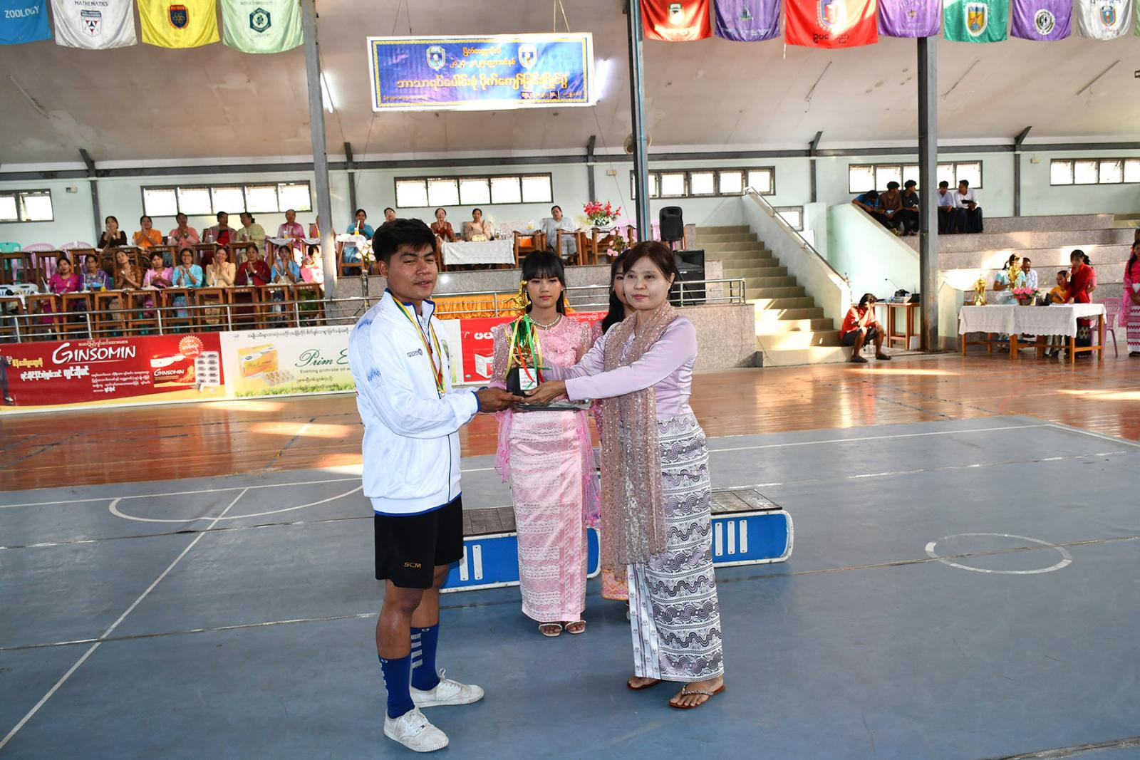 ထို့နောက် သုံးယောက်တွဲပြိုင်ပွဲနှင့် နှစ်ယောက်တွဲပြိုင်ပွဲတို့တွင် ပထမရရှိခဲ့သော မြန်မာစာဌာနအသင်းအား မြိတ်တက္ကသိုလ် ပါမောက္ခချုပ် ဒေါက်တာနေသွယ်ကြည်က တံခွန်စိုက်ဆုဖလားများကို ပေးအပ်ချီးမြှင့်သည်။ အဆိုပါပြိုင်ပွဲကို မြိတ်တက္ကသိုလ် ဘာသာရပ်ပေါင်းစုံမှ ပြိုင်ပွဲဝင် အသင်း(၈)သင်း ပြိုင်ပွဲဝင်အားကစား သမား(၅၀)ဦး ပါဝင်ယှဉ်ပြိုင်ခဲ့ကြပြီး ပြိုင်ပွဲများကို ဖေဖော်ဝါရီ(၁၅)ရက်မှ (၁၉)ရက်နေ့အထိ ကျင်းပခဲ့ကြောင်း သိရသည်။