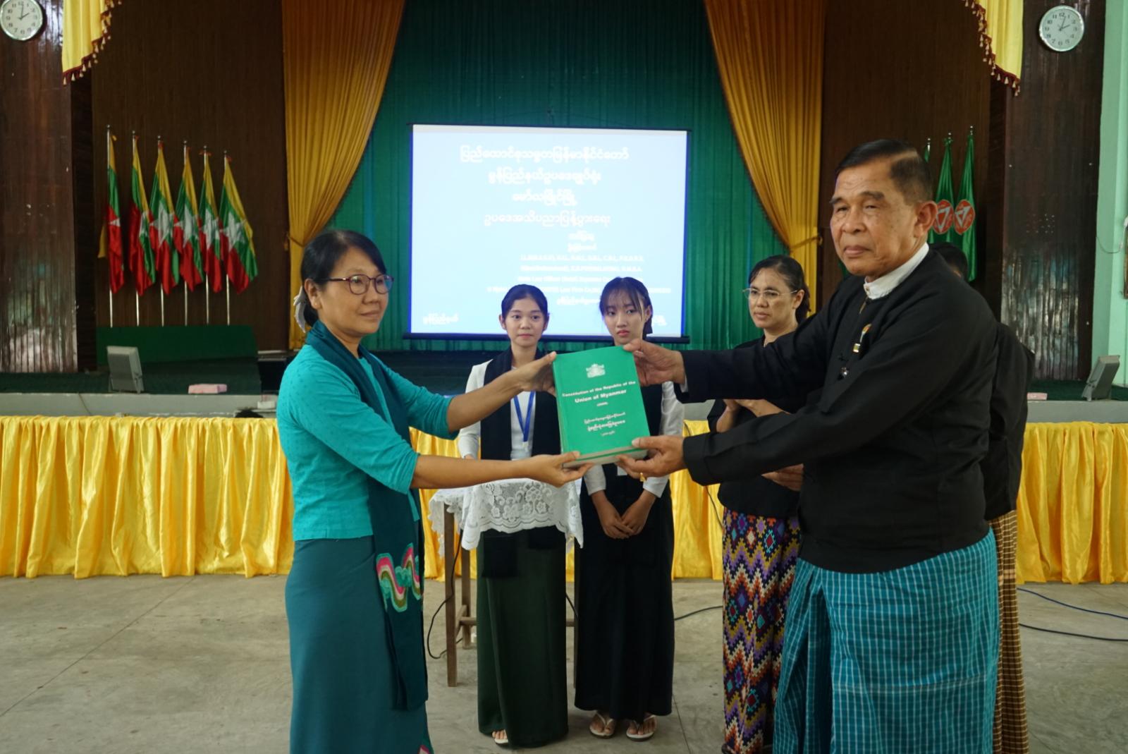 နိုင်ငံသားတိုင်းအနေဖြင့် ဥပဒေကို ကျယ်ကျယ်ပြန့်ပြန့် သိရှိနားလည်နိုင်ရန်အတွက် ယမန်နေ့မွန်းလွဲပိုင်းက မော်လမြိုင်ပညာရေးဒီဂရီကောလိပ် ပညာညီလာခန်းမ၌ သင်တန်းသား၊ သင်တန်းသူများအား ဥပဒေအသိပညာရရှိစေရန် ဥပဒေဘာသာရပ်ကို သင်ကြားပို့ချခဲ့သည်။
