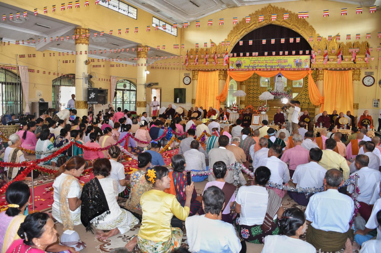 ဆက်လက်၍ ခရိုင်စီမံအုပ်ချုပ်ရေးအဖွဲ့ ဥက္ကဋ္ဌနှင့် တာဝန်ရှိသူတို့က ဆရာတော်ကြီးများထံ လှူဖွယ်များ ဆက်ကပ်လှူဒါန်းကြကာ အလှူရှင်အသီးသီးတို့က တတိယဂုဏ်ထူးဖြင့် အောင်မြင်ခဲ့သော အရှင်သူမြတ်အား ဓမ္မပူဇာ အလှူငွေများ လှူဖွယ်ပစ္စည်းများဖြင့် ဂုဏ်ပြုပူဇော်လှူဒါန်းခဲ့ကြပြီး လှူဒါန်းမှုတို့အတွက် ရေစက်ချအနုမောဒနာတရား နာကြားခဲ့ကြသည်။