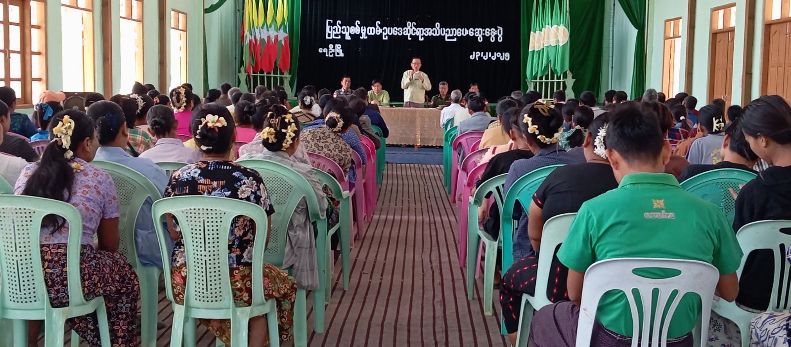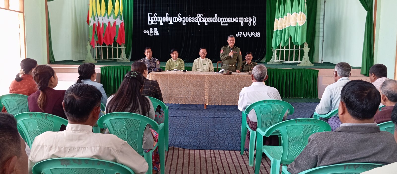ရှေးဦးစွာ ရေဦးခရိုင်ပြည်သူ့စစ်မှုထမ်း ဆင့်ခေါ်ရေးအဖွဲ့ဥက္ကဋ္ဌ ဦးမင်းသူရက အဖွင့်အမှာစကားနှင့်အတူ ပြည်သူ့စစ်မှုထမ်းဥပဒေပြဌာန်းရခြင်းအကြောင်းအရင်း၊ ရည်ရွယ်ချက်၊အဆင့်ဆင့်လုပ်ဆောင်ရသည့် လုပ်ငန်းစဉ်နှင့် ရွှေ့ဆိုင်းခွင့်ရှိသည့်ပုဂ္ဂိုလ်များ၊ ကင်းလွတ်ခွင့်ရှိသည့်ပုဂ္ဂိုလ်များ၊ ဆင့်ခေါ်သည့်အဆင့်အလိုက် လာရောက်ရန်ပျက်ကွက်ပါက ပြစ်မှုပြစ်ဒဏ်များကိုလည်းကောင်း အကျယ်တဝင့် ရှင်းလင်းပြောကြားပြီးနောက် ခရိုင်ပြည်သူ့စစ်မှုထမ်းဆင့်ခေါ်ရေးအဖွဲ့ အဖွဲ့၀င် ဒုတိယဗိုလ်မှူးကြီး တင်အောင်သန်းက နိုင်ငံတော်ကာကွယ်ရေးတာ၀န်များ၊ တာ၀န်ဖြစ်သည့် စစ်မှုထမ်းရမည့်အသက်အရွယ် ရောက်ရှိသူများ၊ စစ်မှုထမ်းရန်ကာလ၊ စစ်မှုထမ်းခြင်းမှ ကင်းလွတ်ခွင့်၊ ရွှေ့ဆိုင်းခွင့်နှင့် လျှော့ပေါ့ခွင့်ရရှိသူများ၊ ပြည်သူ့စစ်မှုထမ်းဥပဒေသည် ရှောင်လွှဲတိမ်းရှောင်၍ မရကြောင်း၊စစ်မှုထမ်းခြင်းမှ ကင်းလွတ်ခွင့်ရရန် ဥပဒေ၊ နည်းဥပဒေနှင့်အညီလျှောက်ထားပုံနည်းလမ်းများ စသည်ဖြင့် အကျယ်တဝင့် ရှင်းလင်းဆွေးနွေးပေးခဲ့ကြကြောင်း သိရသည်။ ဆက်လက်ပြီး မြို့နယ်ပြည်သူ့စစ်မှုထမ်းဆင့် ခေါ်ရေးအဖွဲ့ဥက္ကဋ္ဌ ဦးမင်းနိုင်ထွန်းက ပြည်သူ့စစ်မှုထမ်းဆင့်ခေါ်ရေးအဖွဲ့ ဖွဲ့စည်းထားရှိခြင်း၊ လက်ရှိပြည်သူ့စစ်မှုထမ်းဆင့်ခေါ်ရေး စစ်မှုထမ်းလုပ်ဆောင်နေမှု အခြေအနေများ၊ ပုံစံ (၁) မှ ပုံစံ (၁၂) အထိ ချပြရှင်းလင်းခြင်းနှင့် စစ်မှုထမ်းရန် ဆင့်ခေါ်ရာတွင် ရပ်ကွက်ကျေးရွာအုပ်ချုပ်ရေးမှူးများ ဆောင်ရွက်ရမည့် လုပ်ငန်းတာ၀န်များကိုလည်းကောင်း၊ မြို့နယ်ပြည်သူ့စစ်မှုထမ်းဆင့်ခေါ်ရေးအဖွဲ့ အဖွဲ့၀င် ဗိုလ်မှူးဖြိုး၀င်းထက်က ပြည်သူ့စစ်မှုထမ်းသူများ၏ ခံစားခွင့်များကိုလည်းကောင်း၊ အဖွဲ့ဝင်ရဲမှူးဟန်၀င်းလှိုင်က စစ်မှုထမ်းရန်ဆင့်ခေါ်ချိန် ရှောင်လွှဲရန်အားပေးကူညီသူ၊ ပျက်ကွက်သူများ ကျခံရမည့်ပြစ်မှုပြစ်ဒဏ်များအကြောင်းကိုလည်းကောင်း အသိပညာပေးရှင်းလင်း ဆွေးနွေးခဲ့ကြသည်။