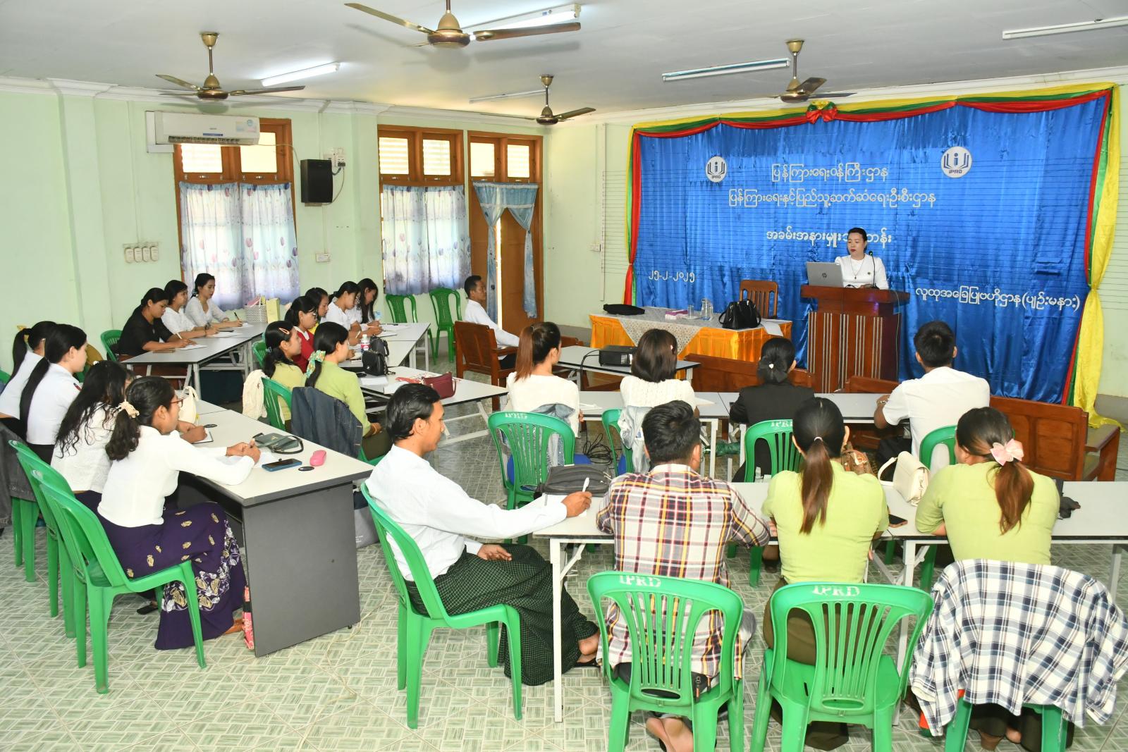 ရှေးဦးစွာ ပြန်ကြားရေးနှင့်ပြည်သူ့ဆက်ဆံရေးဦးစီးဌာန၊ ပြည်ထောင်စုနယ်မြေ၊ နေပြည်တော်ရုံးမှ ဒုတိယတိုင်းဦးစီးမှူး ဒေါ်ခင်မာဖြူကလူထုအခြေပြုဗဟိုဌာန(ပျဉ်းမနား)တွင် သင်တန်းများ ဖွင့်လှစ်ဆောင်ရွက်မှုအခြေအနေများကို ရှင်းလင်းပြောကြားသည်။