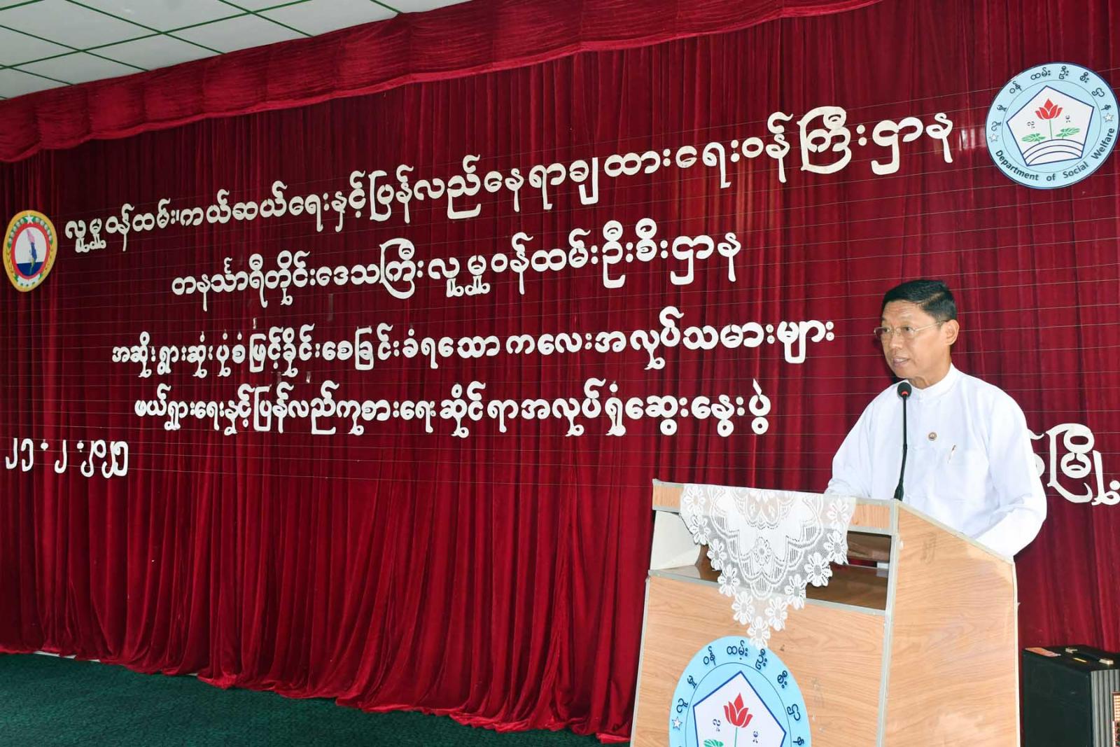 အခမ်းအနားတွင် တိုင်းဒေသကြီး အဆိုးရွားဆုံးပုံစံဖြင့် ခိုင်းစေခြင်းခံရသော ကလေးအလုပ်သမားများ ဖယ်ရှားရေးနှင့် ပြန်လည်ကုစားရေးဆိုင်ရာ လုပ်ငန်းဆပ်ကော်မတီဥက္ကဋ္ဌ၊ တိုင်းဒေသကြီး လူမှုရေးရာဝန်ကြီး ဦးသက်နိုင်က တိုင်းဒေသကြီးအတွင်း အဆိုးရွားဆုံးပုံစံဖြင့် ခိုင်းစေခြင်းခံရသော ကလေးအလုပ်သမားများ ဖယ်ရှားရေးနှင့် ပြန်လည်ကုစားရေးဆိုင်ရာလုပ်ငန်းများ ပိုမိုထိရောက်အောင်မြင်စွာ အကောင်အထည်ဖော်ဆောင်ရွက်နိုင်ရေးအတွက် အလုပ်ရုံဆွေးနွေးပွဲအား ကျင်းပရခြင်းဖြစ်ကြောင်း၊ နိုင်ငံတော်အစိုးရအနေဖြင့် ကလေးအလုပ်သမားပပျောက်ရေးနှင့် စပ်လျဉ်း၍ မူဝါဒများ၊ ရည်မှန်းချက်များ ချမှတ်ကာ ခေတ်ကာလနှင့်လျော်ညီသည့် လုပ်ငန်းစီမံချက်ရေးဆွဲ အကောင်အထည် ဖော်ဆောင်ရွက်လျက်ရှိကြောင်း၊ တိုင်းဒေသကြီးအတွင်း လုပ်ငန်းဆပ်ကော်မတီ(၈)ခု ဖွဲ့စည်းထားရှိပြီး တိုင်းဒေသကြီးအတွင်း အဆိုးရွားဆုံးပုံစံဖြင့် ခိုင်းစေခြင်းခံရသော ကလေးအလုပ်သမားများ ဖယ်ရှားရေးနှင့် ပြန်လည်ကုစားရေး လုပ်ငန်းဆပ်ကော်မတီကို ဖွဲ့စည်းထားရှိပြီးဖြစ်ကြောင်း၊ ကလေးအလုပ်သမားပပျောက်ရေးဆိုင်ရာ လုပ်ငန်းစီမံချက် ၂၀၂၄-၂၀၂၈ ခုနှစ်အထိ (၅)နှစ်တာ ကာလကို လုပ်ငန်းစီမံချက်ပါ လျာထားချက်များအား အကောင်အထည်ဖော်ဆောင်ရွက်လျက်ရှိကြောင်း၊ ကလေးသူငယ်များသညိ နိုင်ငံတော်၏ အနာဂတ်ဖြစ်သည့်အတွက် ကလေးသူငယ်အားလုံးတန်းတူ ဖွံ့ဖြိုးတိုးတက်စေရန် ကလေးအလုပ်သမားအဖြစ် ခိုင်းစေမှု၊ အထူးသဖြင့် အဆိုးရွားဆုံးပုံစံဖြင့် ခိုင်းစေမှုများ ပပျောက်စေရန်နှင့် ထိရောက်စွာ တားဆီးကာကွယ်ရန်အတွက် ဌာန/အဖွဲ့အစည်းများအနေဖြင့် ဝိုင်းဝန်းပူးပေါင်းဆောင်ရွက်ပေးကြရန် လိုအပ်ကြောင်း ပြောကြားသည်။