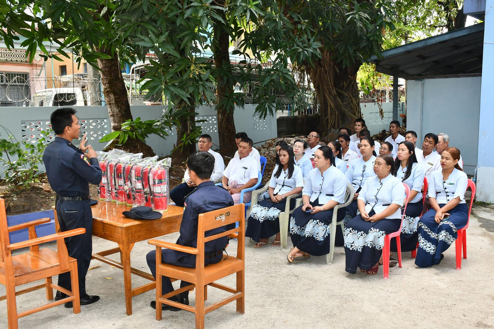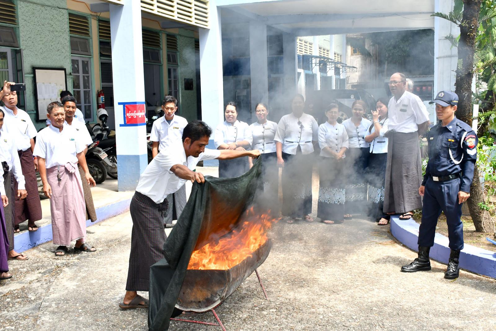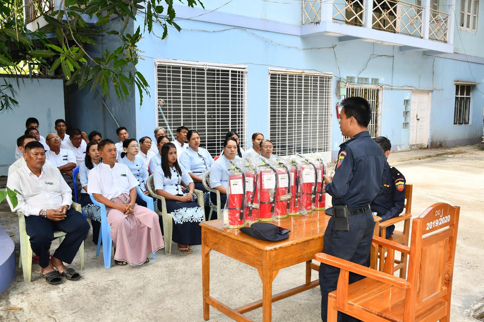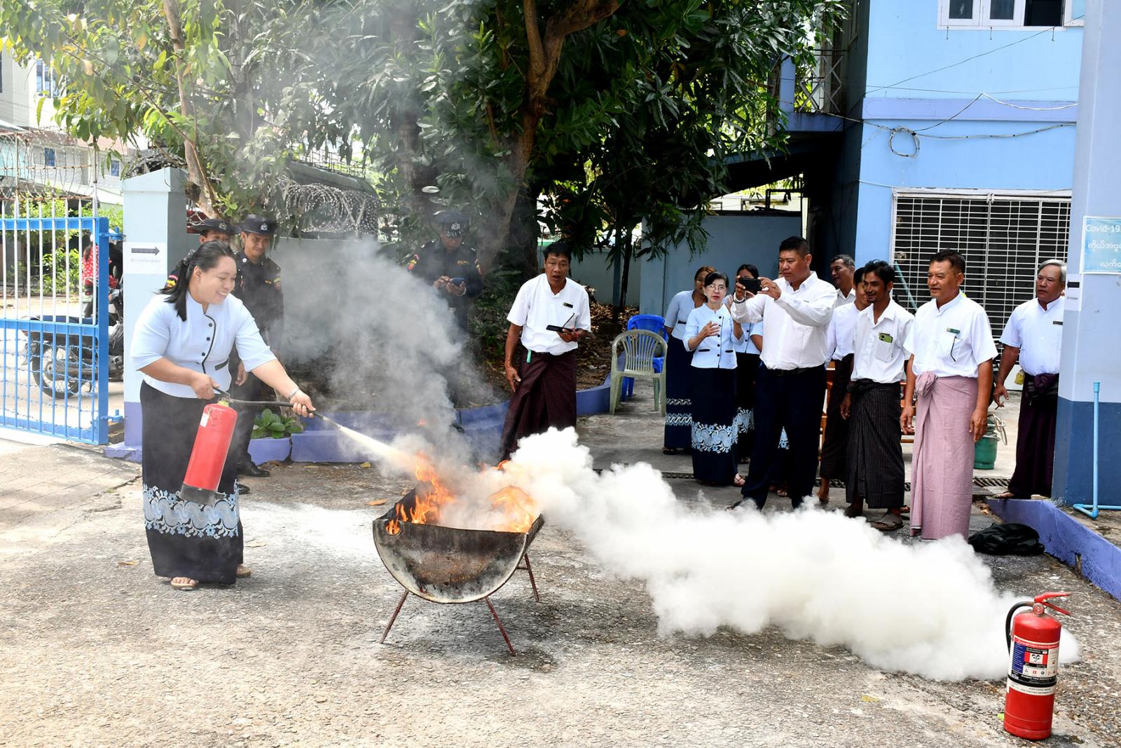 မီးဘေးလုံခြုံရေး အသိပညာပေးဟောပြောခြင်းနှင့် လက်တွေ့မီးငြှိမ်းသတ်သရုပ်ပြခြင်းကို ပွင့်လင်းရာသီရောက်ရှိလာပြီဖြစ်သည့်အတွက် မီးဘေးအန္တရာယ်မှ လျော့နည်းကျဆင်းစေရန်နှင့် မီးဘေးအန္တရာယ်ကင်းဝေးစေရန်ရည်ရွယ်ပြီး မီးငြှိမ်းသတ်ရေးနည်းစနစ်များကို လက်တွေ့ ကိုင်တွယ်အသုံးပြုခြင်းကို မီးသတ်ဦးစီးဌာနမှ ဟောပြောဆွေးနွေး သရုပ်ပြခြင်းဖြစ်သည်။