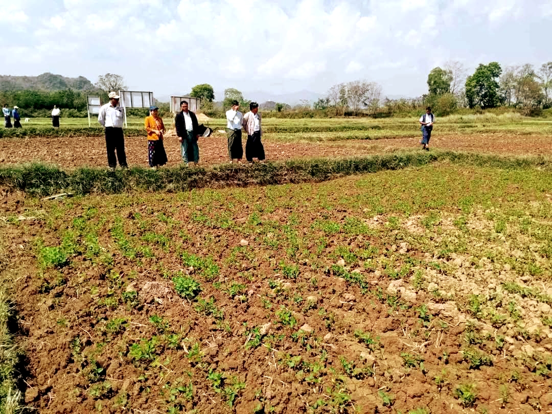 ထို့နောက် ဒုတိယပြည်နယ်ဦးစီးမှူးနှင့် တာဝန်ရှိသူများက နမ့်မော်ဆွမ့်ကျေးရွာအုပ်စုရှိ ပဲပုပ်အကွက်ကျယ် စံပြစိုက်ခင်းဧက (၁၀၀) ဆောင်ရွက်ပြီးစီးမှုနှင့် အောင်မြင်ဖြစ်ထွန်း နေမှုအား ကွင်းဆင်းကြည့်ရှုရာ မြို့နယ်ဦးစီးမှူး ဦးဇော်မော်ဦးက ဆောင်ရွက်ထားရှိမှု အခြေအနေများကို ရှင်းလင်းတင်ပြခဲ့ကြောင်း သိရသည်။