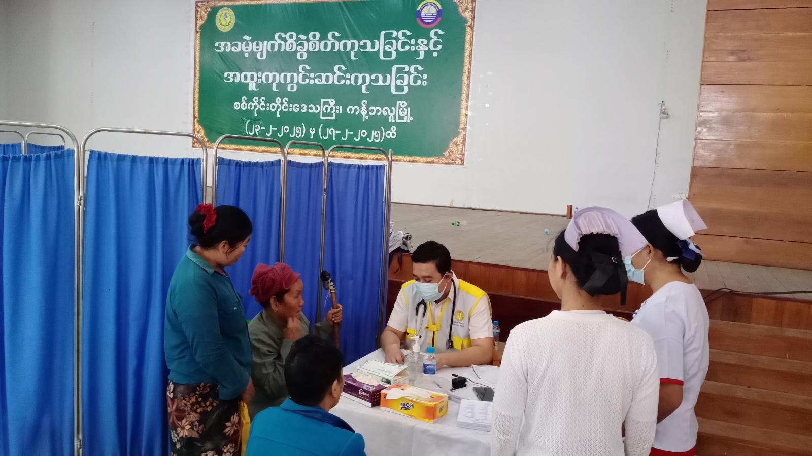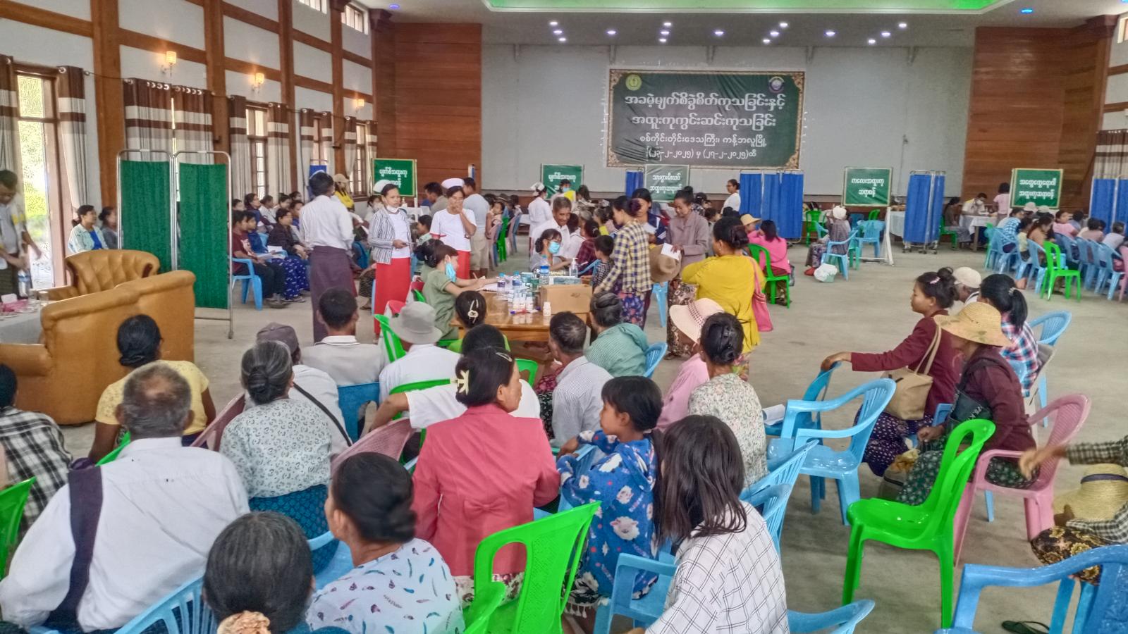 အခမဲ့မျက်စိခွဲစိတ်ကုသခြင်းနှင့်အထူးကု ကွင်းဆင်းကုသခြင်းအနေဖြင့် ယနေ့တွင် မျက်စိ စမ်းသပ်လူနာ ၇၆၀ ဦး၊ မျက်စိခွဲစိတ်ကုသလူနာ ၅၆ ဦး၊ သားဖွားမီးယပ်လူနာ ၆၀ ဦး၊ ကလေးလူ နာ ၆၃ ဦးနှင့် အထွေထွေရောဂါ လူနာ ၁၆၅ ဦး စုစုပေါင်း ၁၁၀၄ ဦးတို့အား စမ်းသပ် စစ်ဆေးကုသပေး ခြင်းများ ဆောင်ရွက်ပေးခဲ့ကြောင်း သိရသည်။