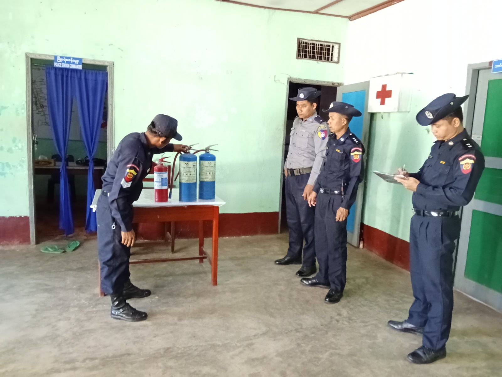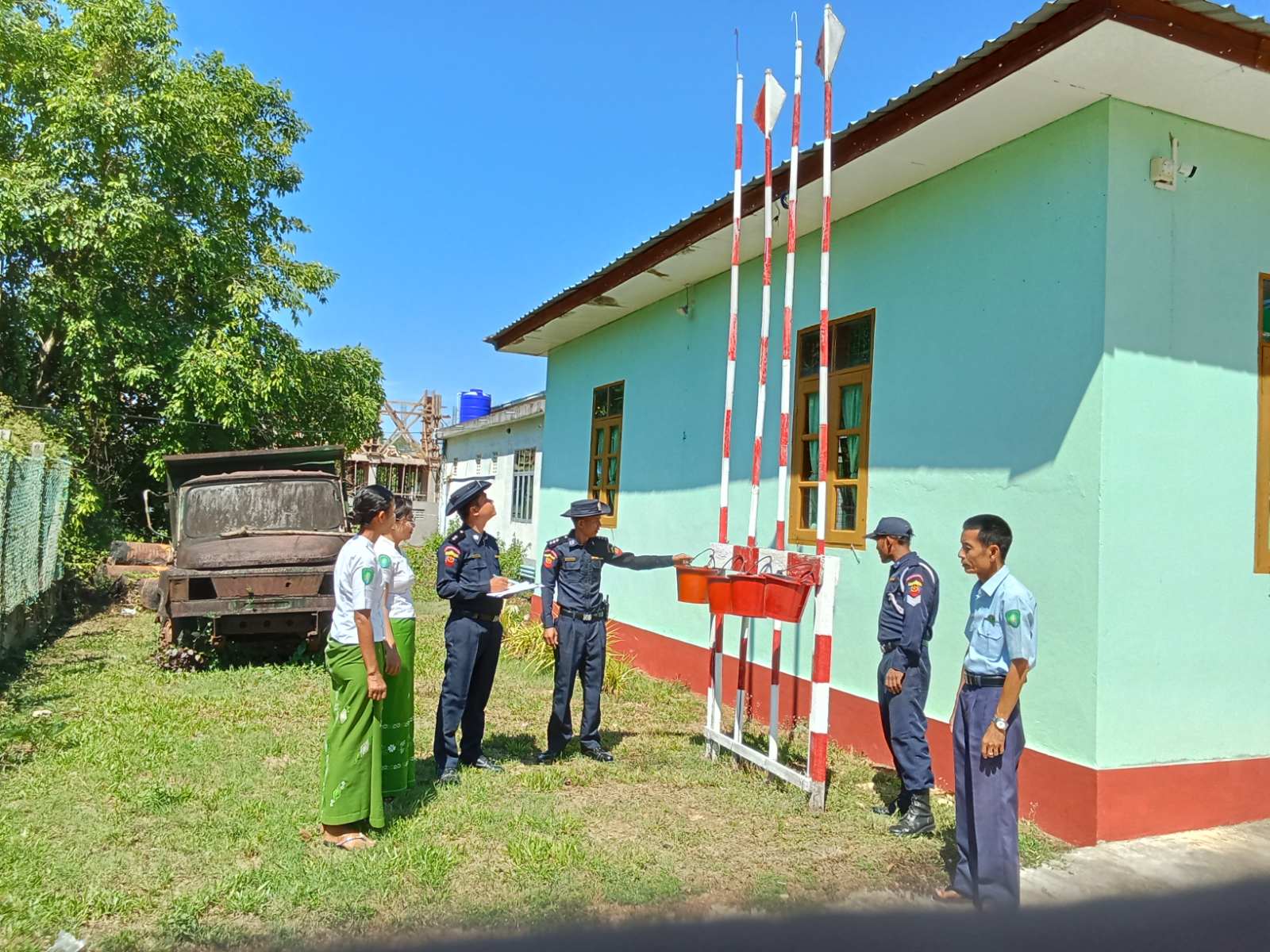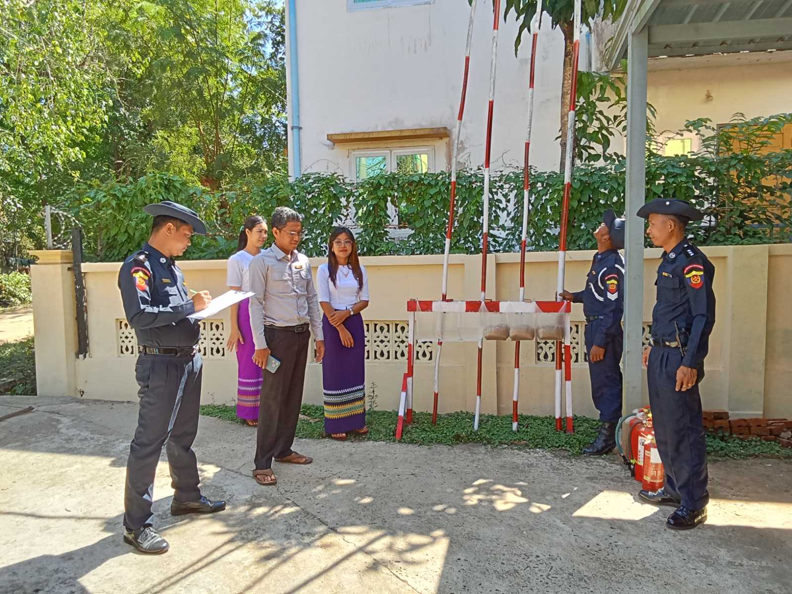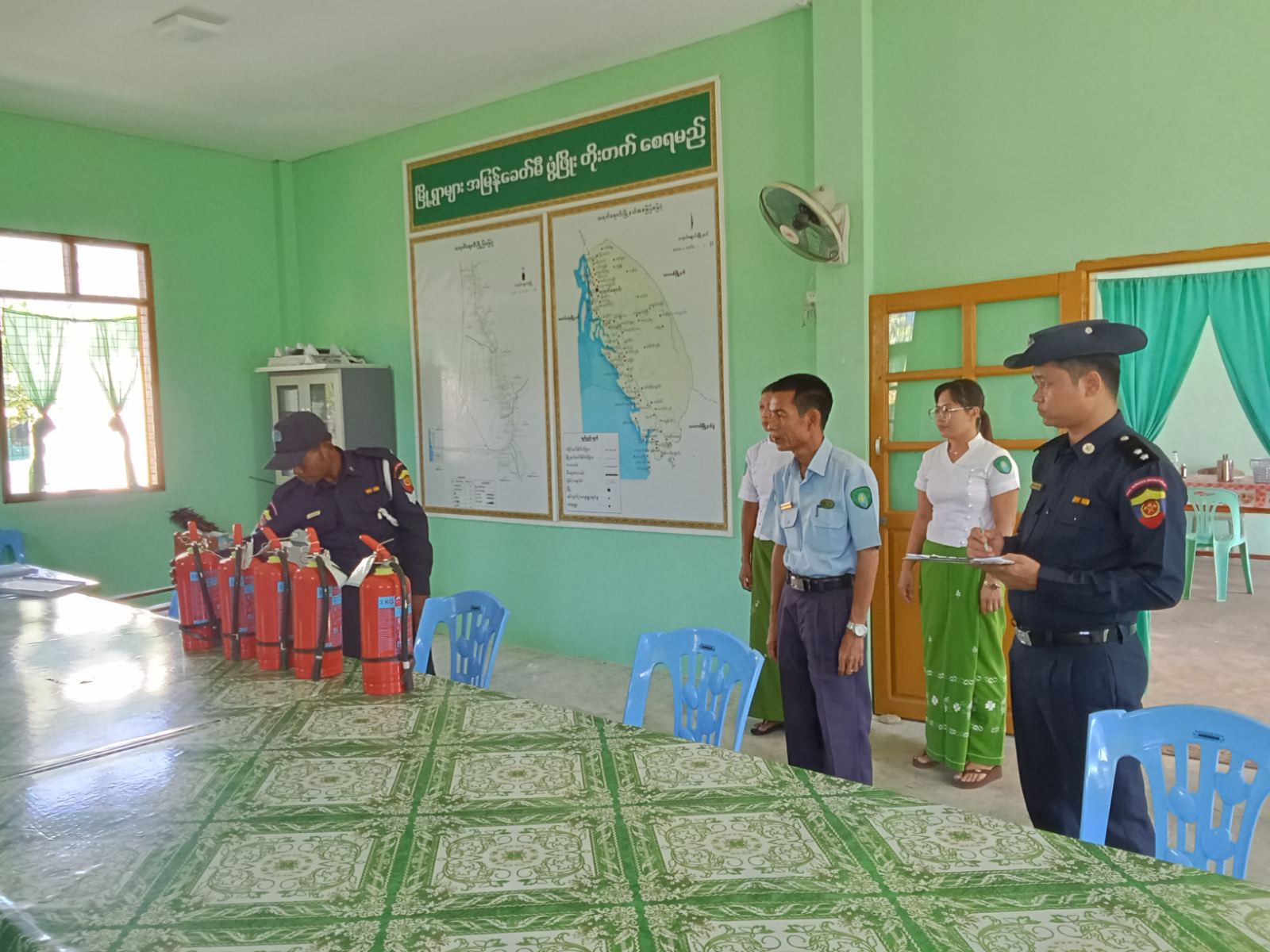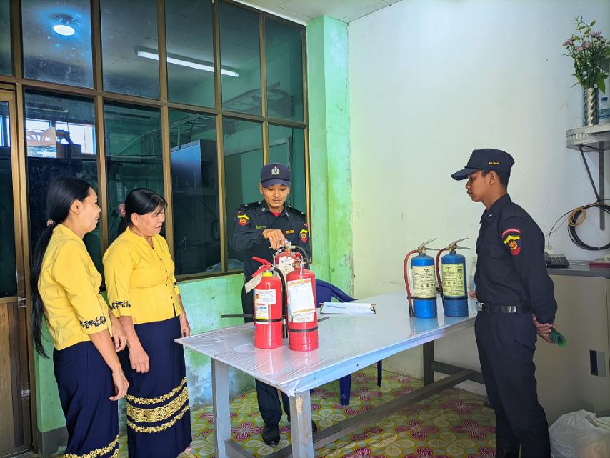 ထိုသို့ဆောင်ရွက်ရာတွင် သရက်ချောင်းမြို့နယ်၊ မီးသတ်ဦးစီးဌာနမှ ဦးစီးအရာရှိ ဦးသက်နိုင်လွင် ဦးဆောင်၍ မီးသတ်တပ်ဖွဲ့ဝင်များက မြို့နယ်အတွင်းရှိ ဌာနဆိုင်ရာရုံးများအား မီးဘေးအန္တရာယ် ကင်းရှင်းစေရန်အတွက် လျှပ်စစ်ဝိုင်ယာများနှင့် လျှပ်စစ်ပစ္စည်းများ၊ မီးဖိုများ၊ ရေအိုး/ ရေစည်/ ရေကန်များ စစ်ဆေးခြင်း၊ မီးချိတ်၊ မီးကပ်၊ ရေပုံး၊ သဲပုံးများ၊ မီးသတ်ဆေးဘူးများထားရှိရန်၊ ဖယောင်းတိုင်မီး၊ ခြင်ဆေးမီး၊ မီးဖိုမီးများအား စနစ်တကျ ငြှိမ်းသတ်ကြရန်ပြောကြားခဲ့ပြီးနောက် မီးသတ်ဆေးဘူးအသုံးပြုနည်းနှင့် ကိုင်တွယ်နည်းများကို ဌာနဆိုင်ရာ ဝန်ထမ်းများအား လက်တွေ့သင်ကြားပေးခဲ့ကြောင်း မြို့နယ်မီးသတ်ဦးစီးဌာန ဦးစီးအရာရှိ ဦးသက်နိုင်လွင်ထံမှ သိရသည်။