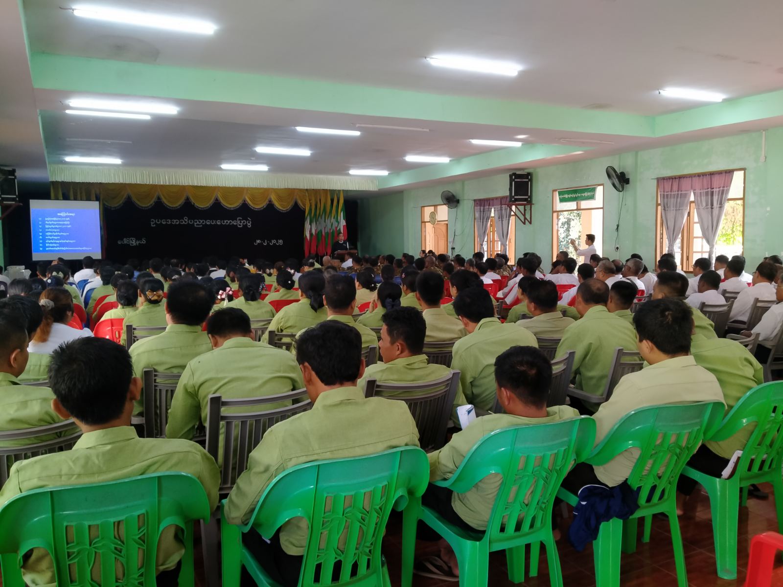 မွန်ပြည်နယ်၊ပေါင်မြို့နယ်၌ ပြည်သူများအား ဥပဒေအသိပညာရရှိစေရန် ဥပဒေအသိပညာပေး ဟောပြောပွဲကို ယမန်နေ့နံနက် (၉) နာရီက အထွေထွေအုပ်ချုပ်ရေးဦးစီးဌာန၊ ဝါရီရူခန်းမ၌ ပြုလုပ်ခဲ့သည်။