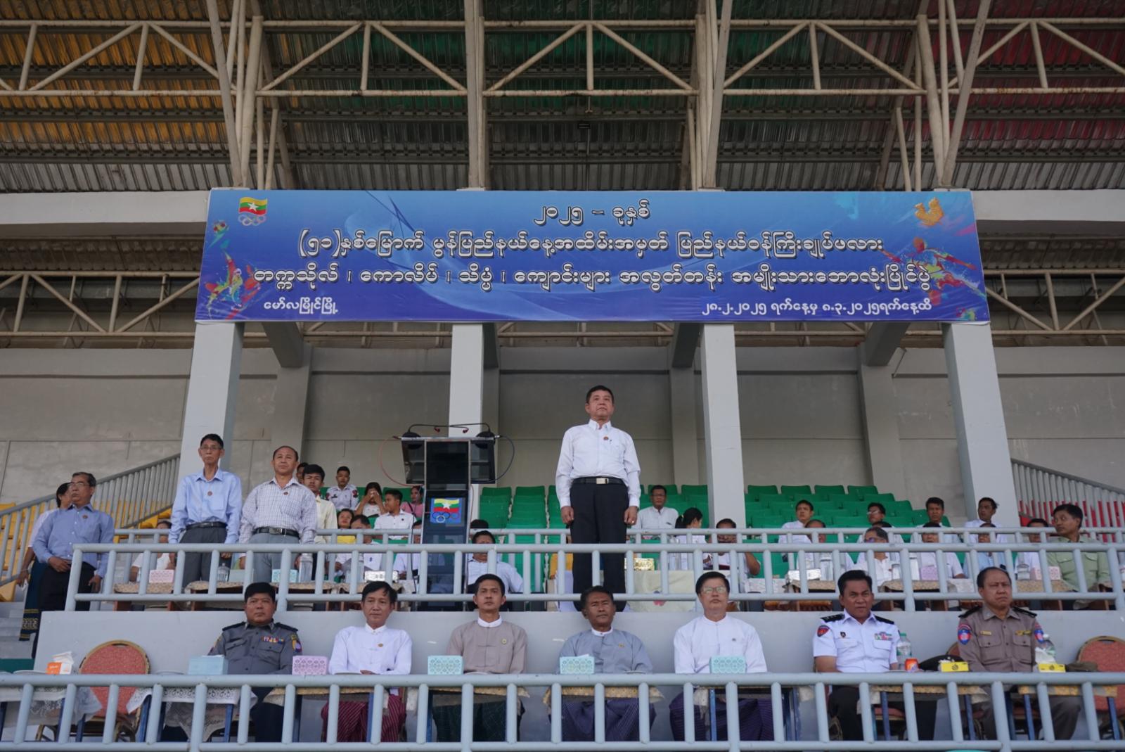 ရှေးဦးစွာပြိုင်ပွဲဝင်အားကစားသမားများမှ ကွင်းအတွင်းနေရာယူ၍ ပြည်နယ်ဝန်ကြီးချုပ် ဦးအောင်ကြည်သိန်းက တစ်မျိုးသားလုံး ကျန်းမာသန်စွမ်းသည့်လူငယ်၊ လူရွယ်များဖြစ်စေရန် နှင့် နိုင်ငံတော်ကိုချစ်သည့် စိတ်၊ နိုင်ငံတော်ကို ကာကွယ်လိုသည့်စိတ်ဓာတ်များ မြင့်မားလာစေရန်အတွက် တိုင်းဒေသကြီးနှင့်ပြည်နယ်များရှိ ကျောင်းများ၏အားကစား ပြက္ခဒိန်ထဲတွင် အားကစားပြိုင်ပွဲများနှင့်အားကစားနှင့်သက်ဆိုင်သည့် Activities များ ထည့်သွင်းရေးဆွဲဆောင်ရွက်ရန် လမ်းညွှန်ချက်ကို အကောင်အထည်ဖော် ဆောင်ရွက်နိုင်ရေးအတွက် ပြည်နယ်အတွင်း အားကစားပြိုင်ပွဲများ ကျင်းပရခြင်းဖြစ်ကြောင်း၊ အားကစားသင်တန်းများ ဖွင့်လှစ်ပေးခြင်း၊ ပြည်နယ်နှင့်တိုင်းဒေသကြီး အားကစားပြိုင်ပွဲများတွင် ဝင်ရောက်ယှဉ်ပြိုင်ခြင်းတို့ကို မွန်ပြည်နယ်အစိုးရအဖွဲ့အနေနဲ့ ဆောင်ရွက်ပေးလျက်ရှိသလို တက္ကသိုလ်ကောလိပ်သိပ္ပံ၊ ကျောင်းများ အအလွတ်တန်းအမျိုးသားဘောလုံးပြိုင်ပွဲကို ကျင်းပပြုလုပ်ပေးခြင်းဖြင့် ဘောလုံး အားကစား တိုးတက်မြင့်မားရေးကို အထောက်အကူပြုစေရန်၊ ဘောလုံးသမားများအချင်းချင်း ချစ်ကြည်ရင်းနှီးမှု ပိုမိုရရှိစေရန်၊ ထူးချွန်ထက်မြက်သည့် မျိုးဆက်သစ် အားကစားသမားများ ပေါ်ထွက်လာစေရန်၊ နိုင်ငံလက်ရွေးစင်ဘောလုံးသမားများ မွန်ပြည်နယ်မှမွေးထုတ် ပေးနိုင်ရန်စသည့် ရည်ရွယ်ချက်ကောင်းတွေနဲ့ ကျင်းပပေးရခြင်းဖြစ်ကြောင်း၊ မွန်ပြည်နယ် ဘောလုံးအားကစားအဆင့်အတန်း တိုးတက်မြင့်မားရေးနှင့် ပြည်နယ်ဂုဏ်ဆောင် အားကစား သမားများ စဉ်ဆက်မပြတ် မွေးထုတ်ပေးနိုင်ရေးအတွက် သက်ဆိုင်ရာတာဝန်ရှိ ပုဂ္ဂိုလ်များ အားလုံး အထူးအာရုံစိုက်ပြီး ဆောင်ရွက်ပေးကြရန်လိုကြောင်း၊ ပြိုင်ပွဲဝင် အားကစားသမား များကလည်း ချမှတ်ထားတဲ့ စည်းမျဉ်း/စည်းကမ်းဘောင်အတွင်းက ကြိုးစားယှဉ်ပြိုင်ကြပြီး ဒိုင်လူကြီးများကလည်း ဘက်လိုက်မှုကင်းစွာနဲ့ မှန်မှန်ကန်ကန် ဆုံးဖြတ်ဆောင်ရွက်ပေးကြ စေလိုကြောင်း ပြောကြားကာ ဘောလုံးပြိုင်ပွဲကို ဖွင့်လှစ်ပေးခဲ့သည်။