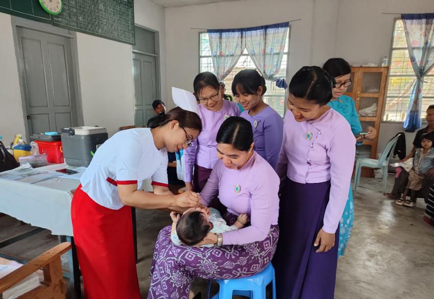ထို့နောက် ခုတင် (၁၀၀) ဆေးရုံအုပ်၊ မြို့နယ်မိခင်နှင့်ကလေးစောင့်ရှောက်ရေးအသင်းဥက္ကဋ္ဌ ဒေါက်တာသဇင်မြင့်နှင့် အသင်းဝင်များ၊ မြို့နယ်အမျိုးသမီးရေးရာအဖွဲ့ဝင်များ တာဝန်ရှိသူများနှင့် ကျန်းမာရေးဝန်ထမ်းများက အသက်နှစ်လမှ ငါးနှစ်အထိ ကလေးငယ်များအား ပိုလီယိုရောဂါ ကာကွယ်ဆေးများ တိုက်ကျွေးခဲ့ကြောင်း သိရသည်။