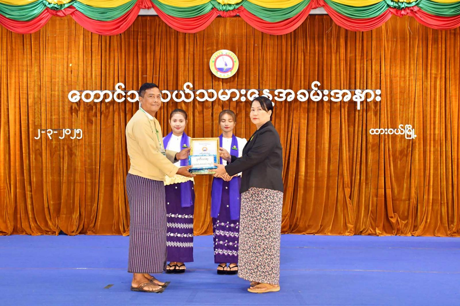 ထို့နောက် တိုင်းဒေသကြီးတရားလွှတ်တော်တရားသူကြီးချုပ် ဒေါ်ပိုက်ပိုက်အေးက မိုးစပါးပန်းတိုင်အထွက်နှုန်းအများဆုံး ဒုတိယဆုရရှိသည့် သရက်ချောင်းမြို့နယ်၊ ပိန်းတောကျေးရွာမှ အကျိုးဆောင်တောင်သူ ဦးမင်းညီညီ အားလည်းကောင်း၊ ဆောင်းသီးနှံ(မတ်ပဲ)တိုးချဲ့ စိုက်ပျိုးမှုအကောင်းဆုံး ဒုတိယဆုရရှိသည့် ထားဝယ်မြို့နယ်၊ စိုက်ပျိုး ရေးဦးစီးမှူးဦးထွန်းထွန်း အား လည်းကောင်း၊ စိုက်ပျိုးရေးဆိုင်ရာ အလေ့အကျင့်ကောင်းများ (GAP)အသိအမှတ်ပြု လက်မှတ် ဒုတိယဆုရရှိသည့် ရေဖြူမြို့နယ်မှ အကျိုးဆောင်တောင်သူ ဦးအောင်မျိုးအားလည်းကောင်း၊ ကမ်းရိုးတန်း ဒေသတိုင်းစစ်ဌာနချုပ် ဒုတိယတိုင်းမှူးဗိုလ်မှူးချုပ် အောင်မျိုးထွန်းက မိုးစပါးပန်းတိုင်အထွက်နှုန်းအများဆုံး တတိယဆုရရှိသည့် ထားဝယ်မြို့နယ်၊ ကျောက်မော်ကျေးရွာမှ အကျိုးဆောင်တောင်သူ ဒေါ်သန်းနွယ် အား လည်းကောင်း၊ ဆောင်းသီးနှံ(မတ်ပဲ)တိုးချဲ့ စိုက်ပျိုးမှုအကောင်းဆုံး တတိယဆုရရှိသည့် မြိတ်မြို့နယ် စိုက်ပျိုးရေးဦးစီးဌာန(ကိုယ်စား) ခရိုင်မျိုးစေ့တာဝန်ခံ ဦးမျိုးမျိုးနောင်ဦး အား လည်းကောင်း၊ စိုက်ပျိုးရေးဆိုင်ရာ အလေ့အကျင့်ကောင်းများ(GAP) အသိအမှတ်ပြု လက်မှတ် တတိယဆုရရှိသည့် မြိတ်ခရိုင်မှ ပုလောမြို့နယ်အကျိုးဆောင်တောင်သူတစ်ဦးအားလည်းကောင်း ဂုဏ်ပြုဆုများ အသီးသီးပေးအပ်ချီးမြှင့်သည်။
