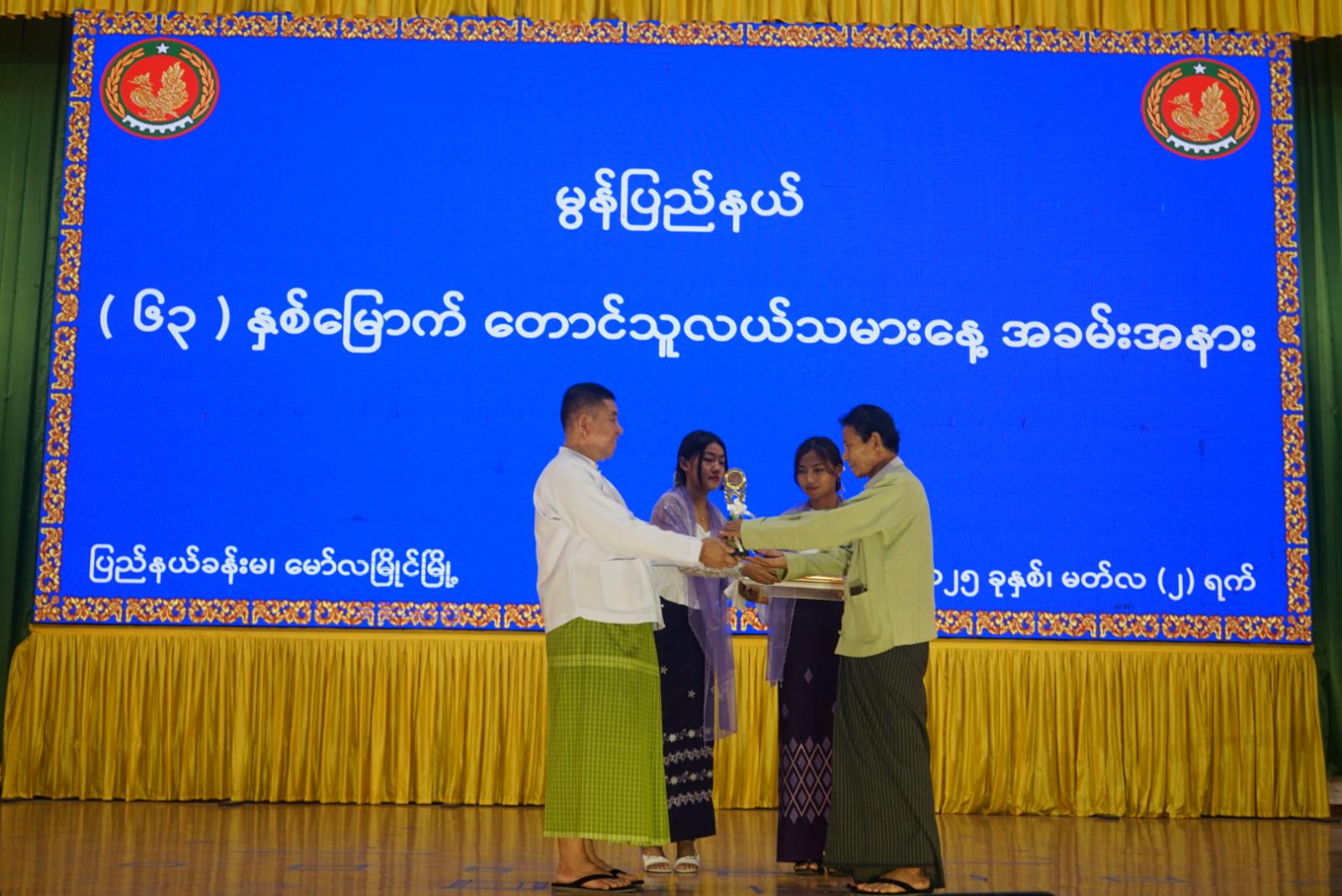 ယင်းနောက် ပြည်နယ်တရားလွှတ်တော် တရားသူကြီးချုပ်က မတ်ပဲနှင့် ပဲတီစိမ်း၊ စံပြအကွက်ပန်းတိုင်းအထွက်နှုန်း ရရှိသည့် မြို့နယ်များမှ တောင်သူအစုအဖွဲ့များအား လည်းကောင်း၊ ပြည်နယ်လုံခြုံရေးနှင့် နယ်စပ်ရေးရာဝန်ကြီးက ဘက်စုံမွေးမြူသူ၊ ဝက်သားပေါက်ဖြန့်ဖြူးခြင်းနှင့် အသားတိုးထုတ်လုပ်နိုင်သူ၊ ငါးမွေးမြူရေး ထူးချွန်လုပ်ကိုင်သူတို့အားလည်းကောင်း ဆုတံဆိပ်နှင့် ဂုဏ်ပြုမှတ်တမ်းလွှာများ ပေးအပ်ခဲ့ပြီး ထူးချွန်ဆုရရှိသူများ၊ ဆွေးနွေးဟောပြောကြသည့် ပညာရှင်များနှင့် စုပေါင်းမှတ်တမ်းတင်ဓာတ်ပုံများ ရိုက်ကူး၍ တက်ရောက်လာကြသောတောင်သူ လယ်သမားများအား ရင်းရင်းနှီးနှီး နှုတ်ဆက်စကားပြောကြားခဲ့သည်။