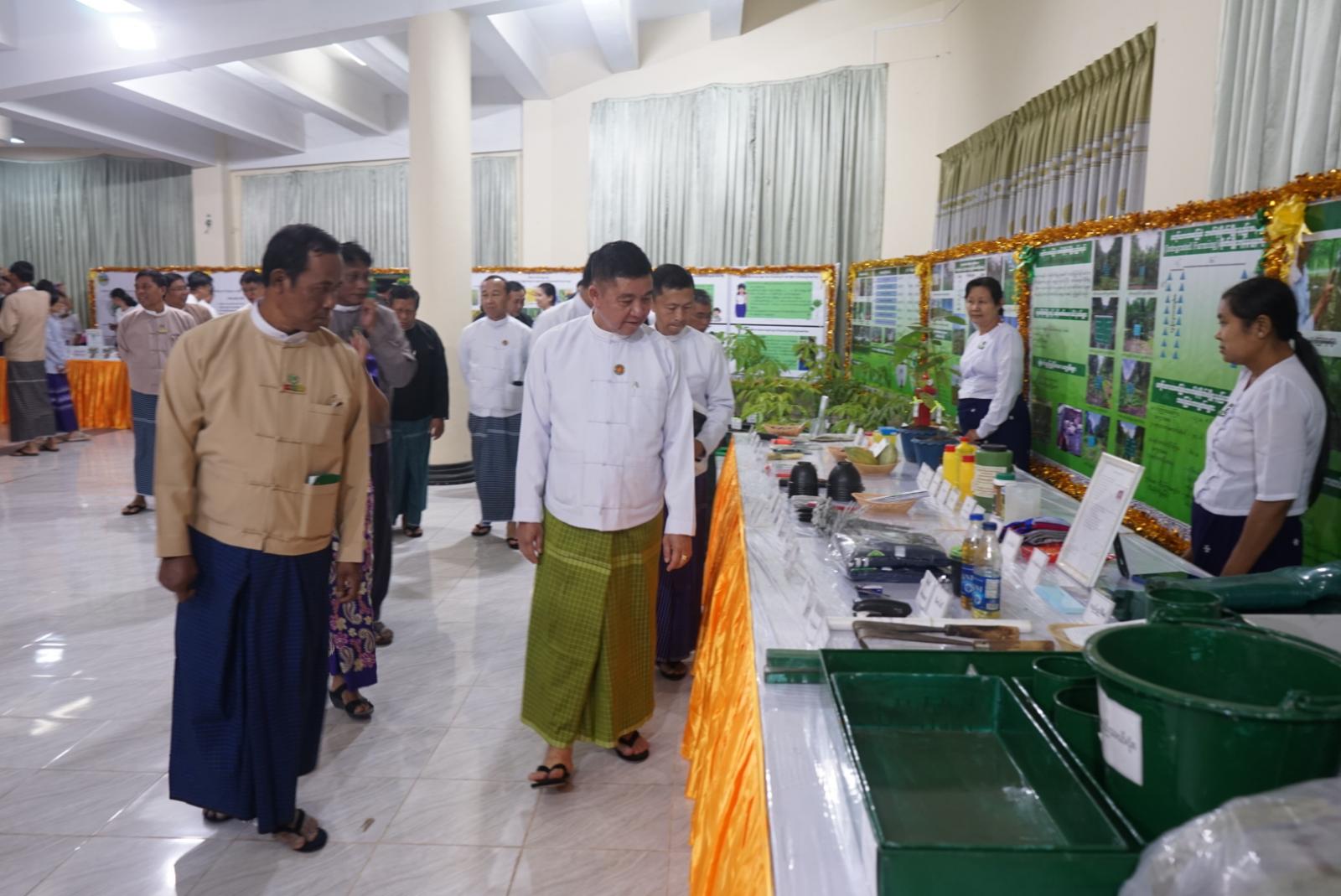 ဆက်လက်၍ ပြည်နယ်ဝန်ကြီးချုပ်နှင့်အဖွဲ့သည် ခန်းမအတွင်း ခင်းကျင်းပြသထားသော မွန်ပြည်နယ်ရှိ အဓိကမြေအမျိုးအစားများ၊ တစ်ပိုင်တစိနိုင် မျိုးသန့်ပွားနည်းစနစ်များ၊ သီးနှံပိုးမွှားရောဂါ လက္ခဏာများ၊ ရောဘာမျိုးများ ခင်းကျင်းပြသထားမှု၊ ရောဘာအစေ့ခြစ်လုပ်ငန်းသုံး ပစ္စည်းကိရိယာများ၊ စိုက်ပျိုးရေးဆိုင်ရာ အလေ့အကျင့်ကောင်းများ Myanmar GAP၊ ပြည်နယ်အတွင်း အဓိက စိုက်ပျိုးသော ဥယျာဥ်ခြံသီးနှံများ၊ လယ်ယာသုံးစက်ကိရိယာပစ္စည်းများ ပြခန်းတို့အား လှည့်လည်ကြည့်ရှု အားပေးခဲ့သည်။