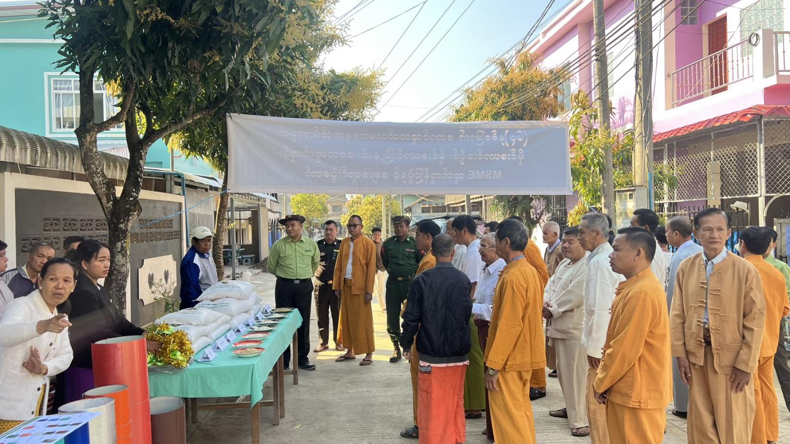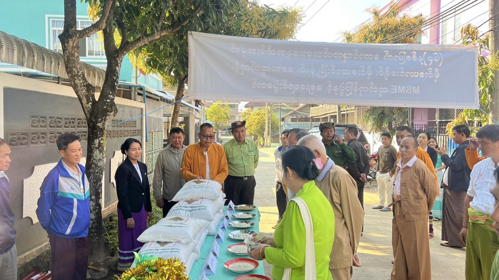 ထို့နောက် မြို့နယ်စီမံအုပ်ချုပ်ရေးမှူး ဦးစိုးသက်ဆွေ၊ မြို့နယ်စီမံအုပ်ချုပ်ရေးအဖွဲ့ဝင်များ၊ မြို့နယ်အဆင့် ဌာနဆိုင်ရာတာဝန်ရှိသူများ၊ ဒေသခံပြည်သူများက အသေးစား၊ အငယ်စားနှင့် အလတ်စားစီးပွားရေး (MSME) လုပ်ငန်း ထုတ်ကုန်ပြပွဲတွင် ခင်းကျင်းပြသထားသော မြို့နယ်အတွင်းမှ MSME ဒေသထုတ်ကုန်ပစ္စည်းများကို လှည့်လည်ကြည့်ရှု အားပေးကြောင်း သိရသည်။