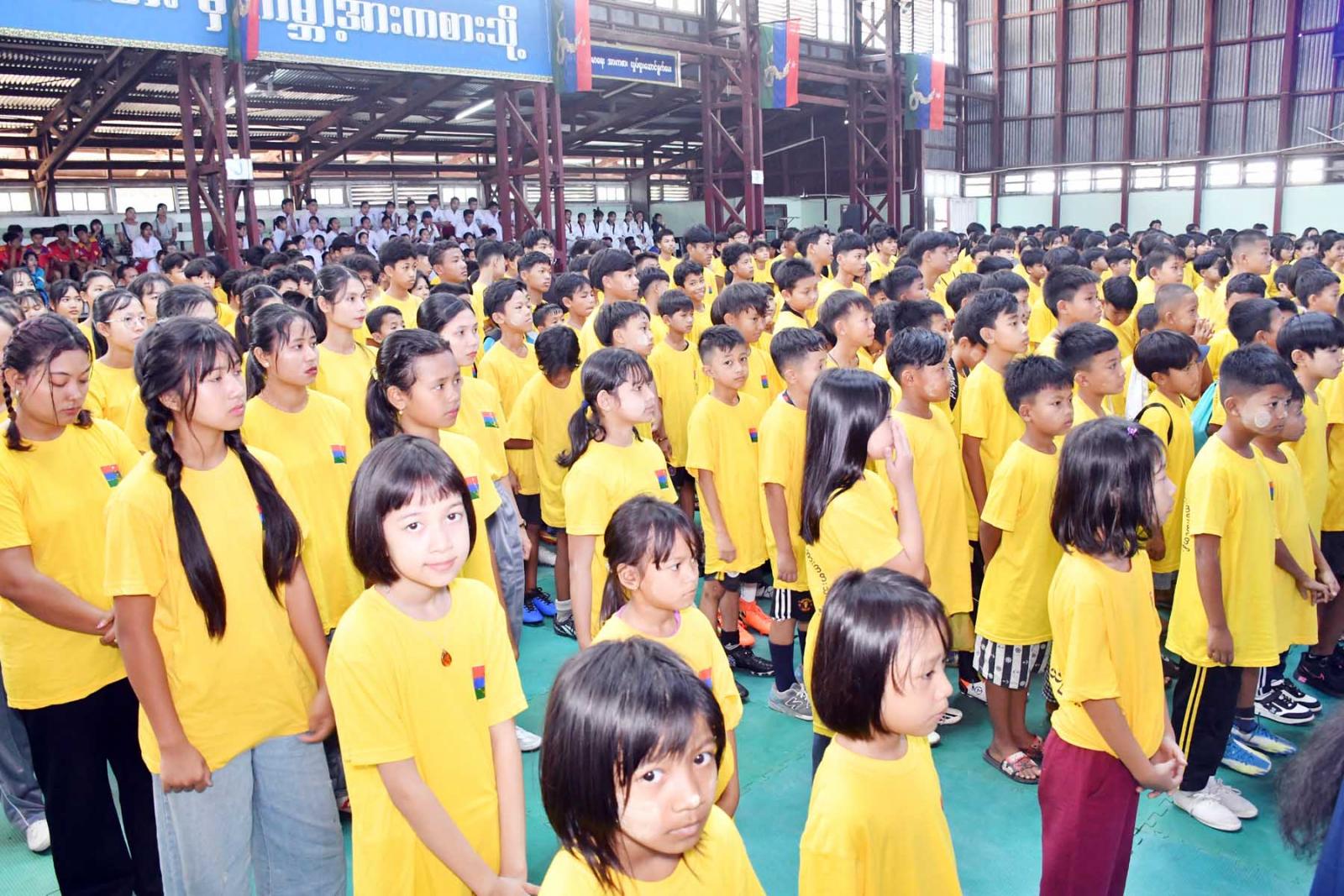 ထို့နောက် သင်တန်းသားများက အားကစားသစ္စာအဓိဋ္ဌာန် (၄) ချက် ရွတ်ဆိုပြီး ကွင်းအတွင်း ပြန်လည်ထွက်ခွာကာ တိုင်းဒေသကြီးဝန်ကြီးချုပ်၊ တိုင်းဒေသကြီးတရားလွတ်တော်တရားသူ ကြီးချုပ်၊ တိုင်းဒေသကြီးဝန်ကြီးများနှင့် တာဝန်ရှ်သူများ အားကစားဝါသနာရှင်များက မြန်မာ့သိုင်း၊ ဂျူဒို၊ တိုက်ကွမ်ဒို၊ အေရိုးဗစ်အဖွဲ့များ၏သရုပ်ပြသမှုကို ကြည့်ရှုအားပေးသည်။