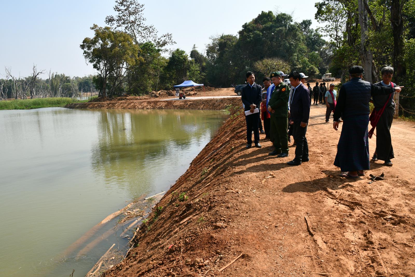 ပြည်နယ်လုံခြုံရေးနှင့်နယ်စပ်ရေးရာဝန်ကြီးသည် ရှမ်းပြည်နယ်ဆည်မြောင်းနှင့်ရေအသုံးချမှုစီမံခန့်ခွဲရေးဦးစီးဌာနရုံးမှ လက်ထောက်ညွှန်ကြားရေးမှူး ဦးအောင်ကိုကိုမင်းနှင့် တာဝန်ရှိသူများ လိုက်ပါလျက် တောင်ကြီးမြို့နယ်၊ နောင်ကားကျေးရွာအုပ်စု၊ နောင်ကားကျေးရွာမြောက်ဘက်အနီး နောင်ကားရေလှောင်တမံ ရေဝပ်ဧရိယာအတွင်း သဲနုန်းတူးဖော်ခြင်းလုပ်ငန်းဧရိယာတစ်လျှောက် လှည့်လည်ကြည့်ရှုစစ်ဆေးရာ ဆည်မြောင်းနှင့်ရေအသုံးချမှုစီမံခန့်ခွဲရေးဦးစီးဌာနမှ လက်ထောက်ညွှန်ကြားရေးမှူး ဦးအောင်ကိုကိုမင်းက သဲနုန်းတူးဖော်မှုအခြေအနေများ၊ ကန်ဧရိယာတစ်လျှောက် ဘောင်ဖို့နေမှုအခြေအနေများနှင့် ပတ်သက်၍ ရှင်းလင်းတင်ပြသည်။
